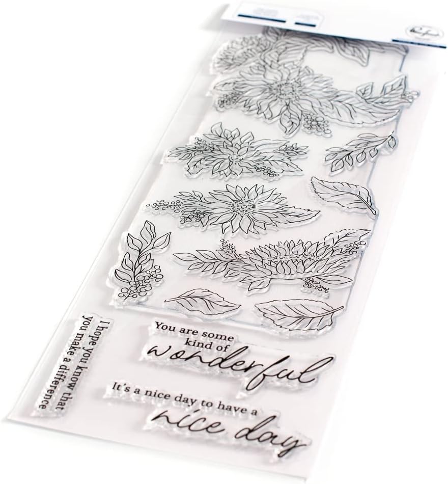 4 x 12 inch photopolymer clear stamp set designed by Emily Midgett. Made to coordinate with the Sunflowers die, Sunflowers layering stencils and Sunflowers washi tape. Available for purchase separately. This innovative stamp includes all the floral clusters on one stamp, so it pairs perfectly with the 1-piece coordinating die. The 1-piece stamp is slightly larger than 8.5 inches. It will fit at an angle in a standard stamping platform, or you will need to use a larger stamping platform. You can also use the hinged lid method that we have showcased in our Tips & Tricks section on our YouTube channel. Stamp the Sunflowers outline images in all the different ink choices, including detail black, fadeout ink or heat emboss for some added shine. Made in USA.