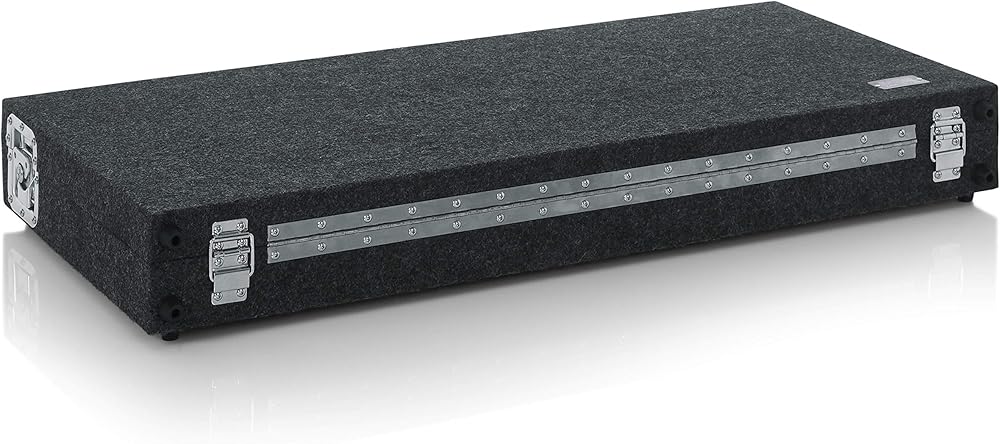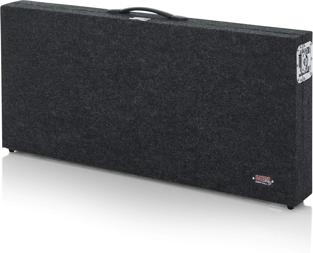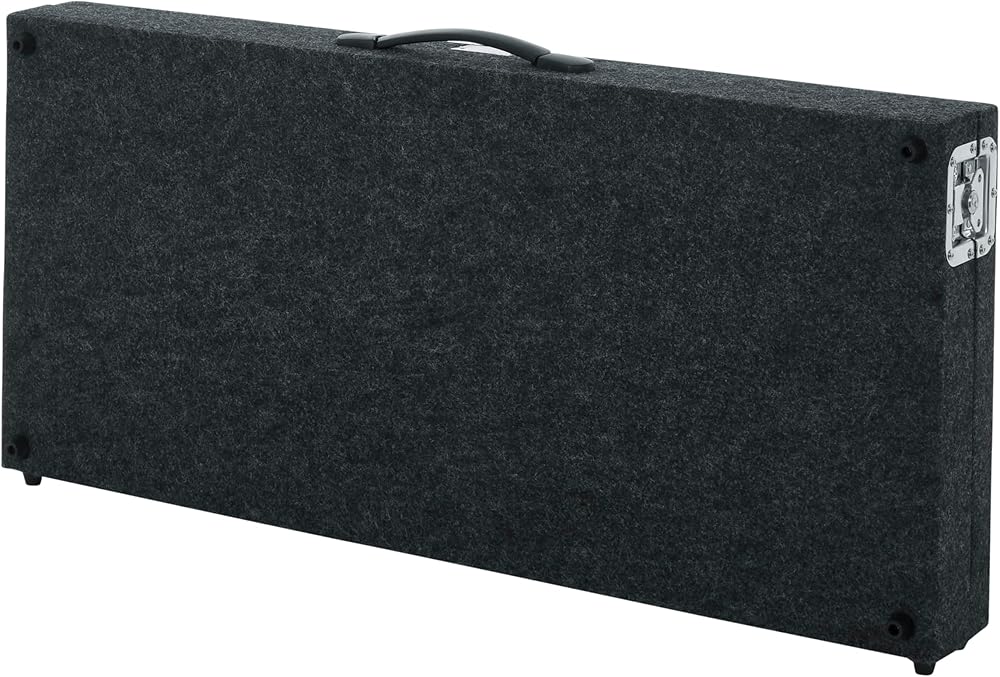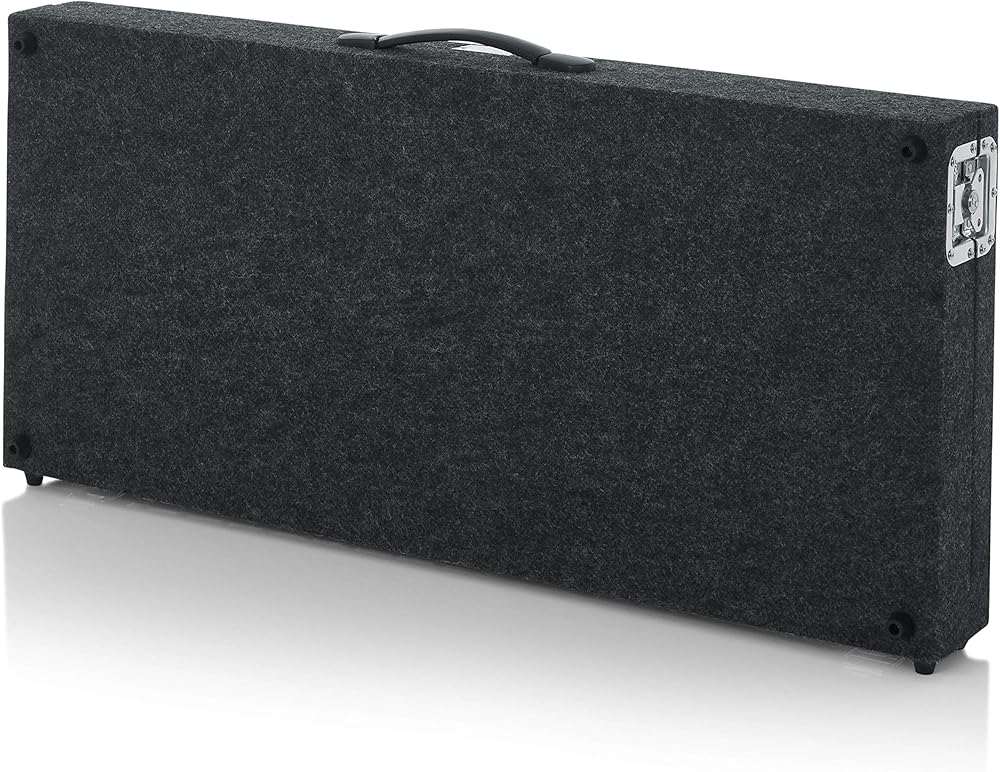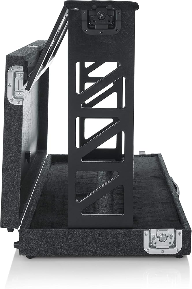 Gator GTRSTD4 Rack style stand opens to holdup to 4 Guitars then folds into a compact carry case when you are ready to pack up. The stand section is able to hold any variation of electric, acoustic, or bass guitars and conveniently folds down and locks into place with recessed twist latches. The interior features black Plush lining and includes elastic secure bands to keep your guitars from sliding out of the stand if it is bumped when in use. The exterior of the stand is constructed of sturdy Baltic birch wood covered in grey carpeting with feet on the back and bottom of the case to prevent wear and extend the life of the product. The Gator rack style stand case combo is flight and travel ready with commercial grade, penn-elcom twist latches, hardware and a rugged, comfortable carry handle.
