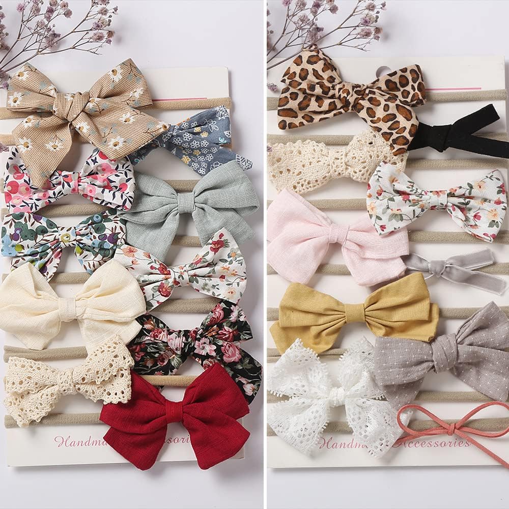 【Charming Bady Gift Set】: Our baby girl headbands with bows suits are perfectly wrapped on two exquisite display cards and ready to be given as a gift! With 20 adorable and modern designs, the hair bows headband will be your best choice for newborn photo props, outfits, hair accessories and baby shower gifts.