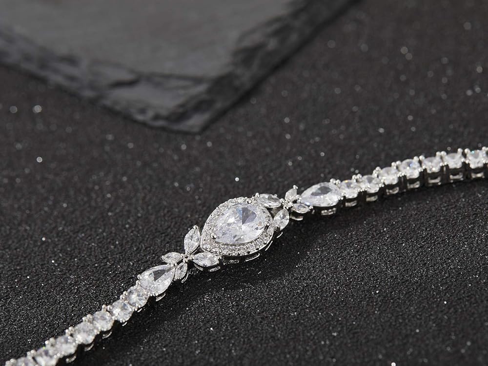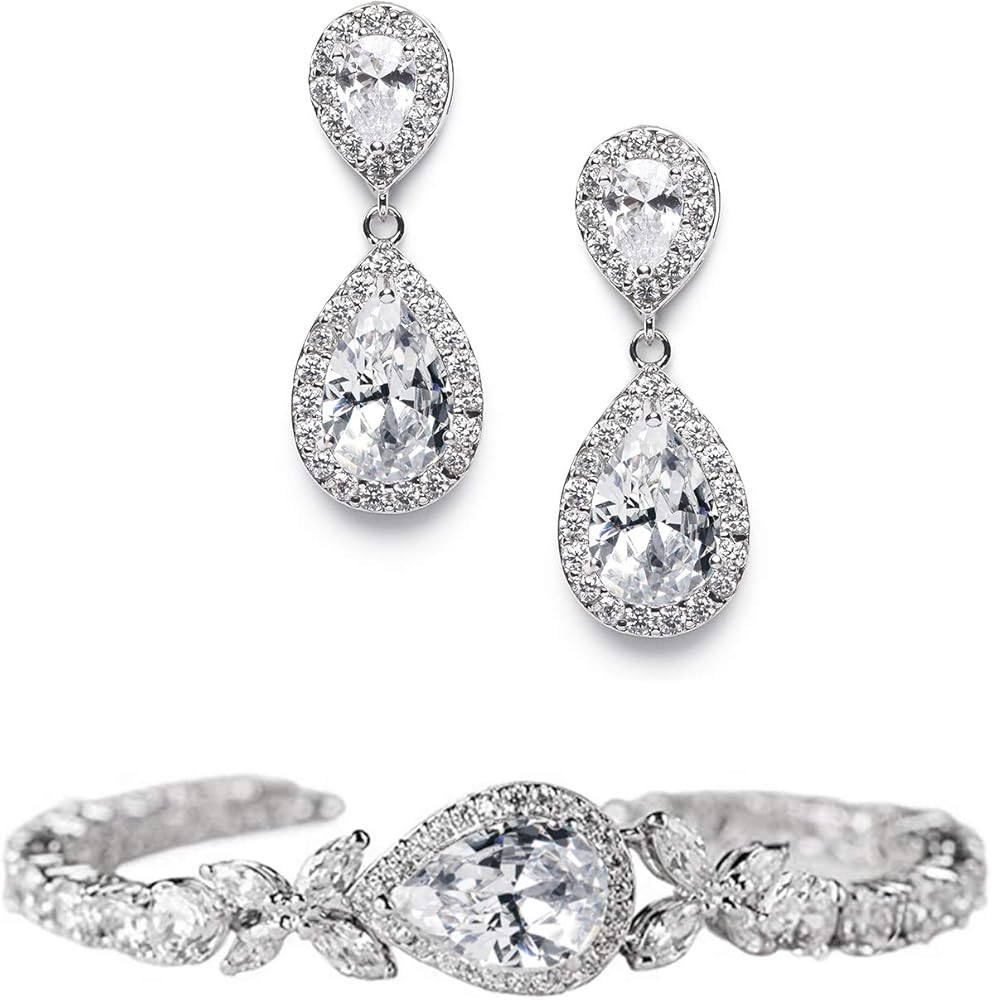 Teardrop Dangle Earrings and bracelets made with High Quality AAA Grade Cubic Zirconia for Diamond-like Brilliance which provide you a peculiar visual feast. Perfect accessory for wedding, engagement, prom, parties, birthday, pageant or any occasion you want to be more charming