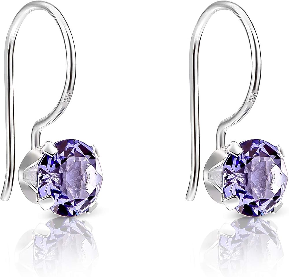 DTPsilver 925 Sterling Silver SMALL/MEDIUM Round Fixed Hook Earrings made with Crystals from Swarovski Elements - Diameter: 6 mm