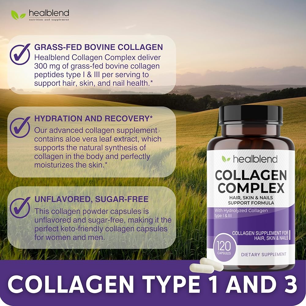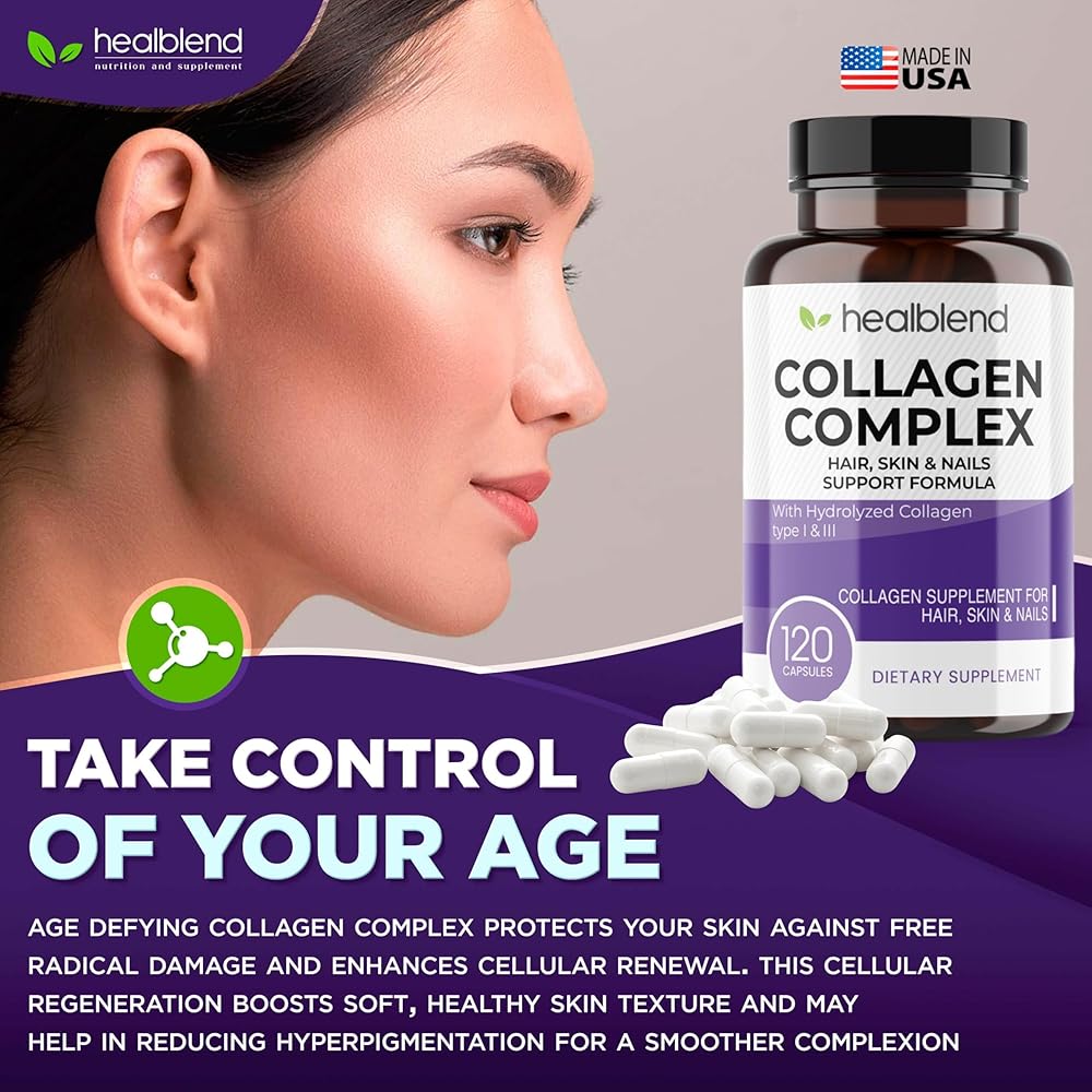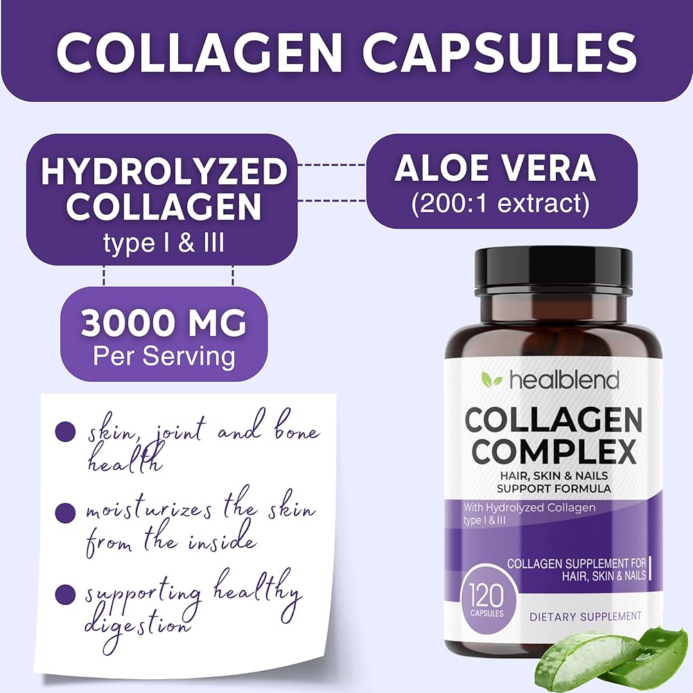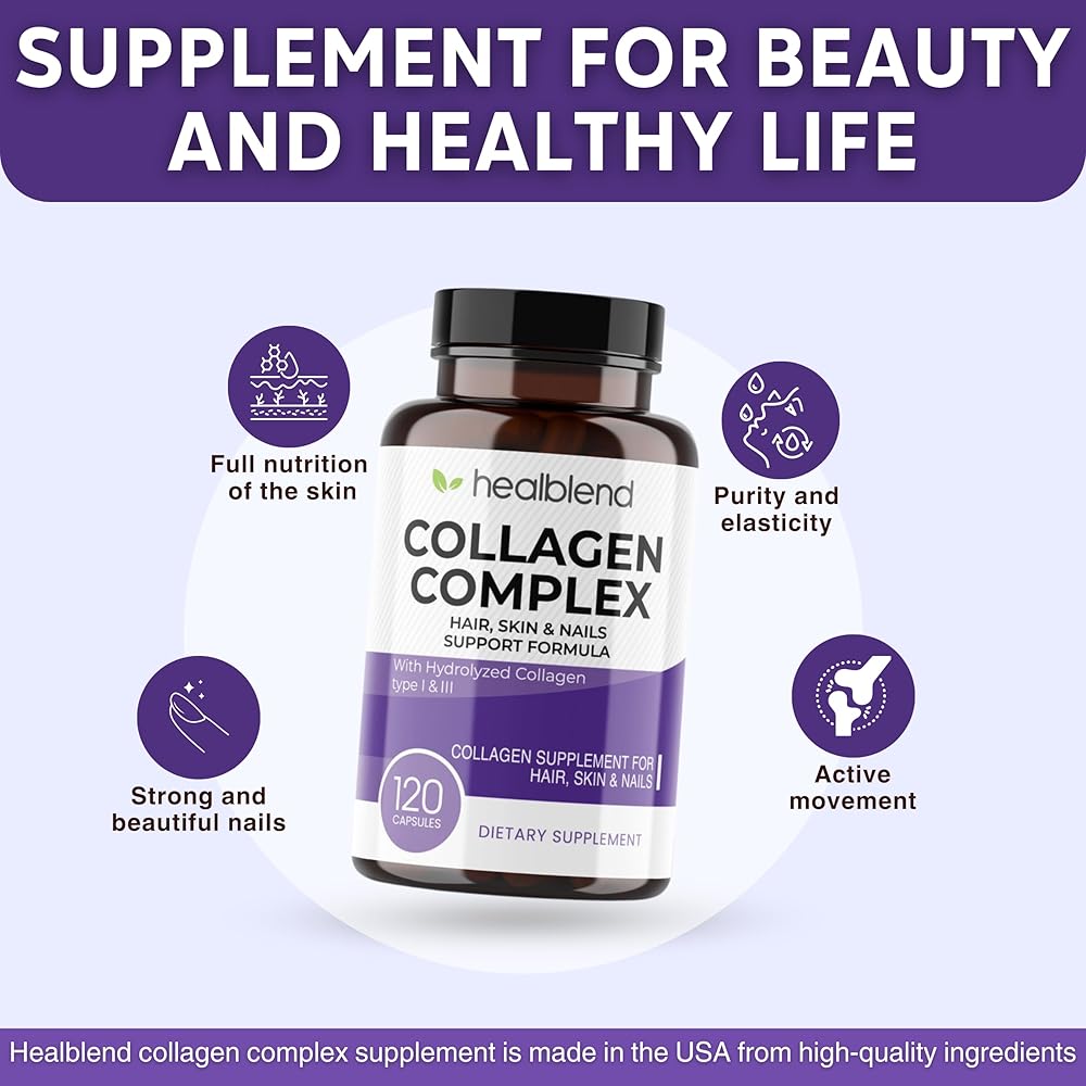 healblend Collagen Complex - Hydrolyzed Collagen Supplement for Women and Men, Anti-Aging and Healthy Joints, Healthy Skin, Hair and Nails (240 Capsules) (2 Pack)