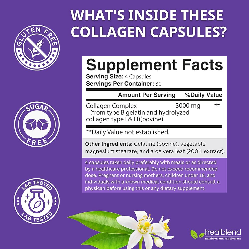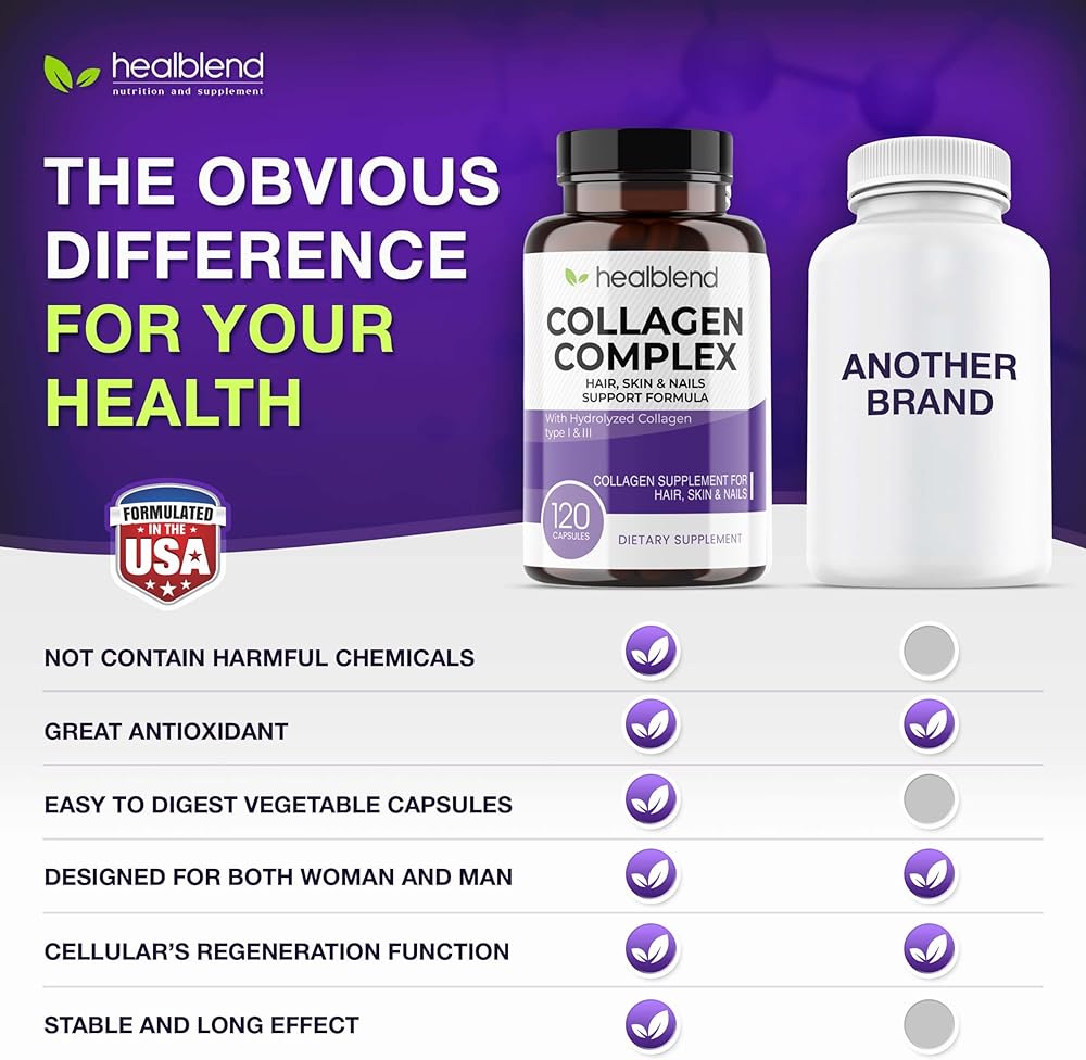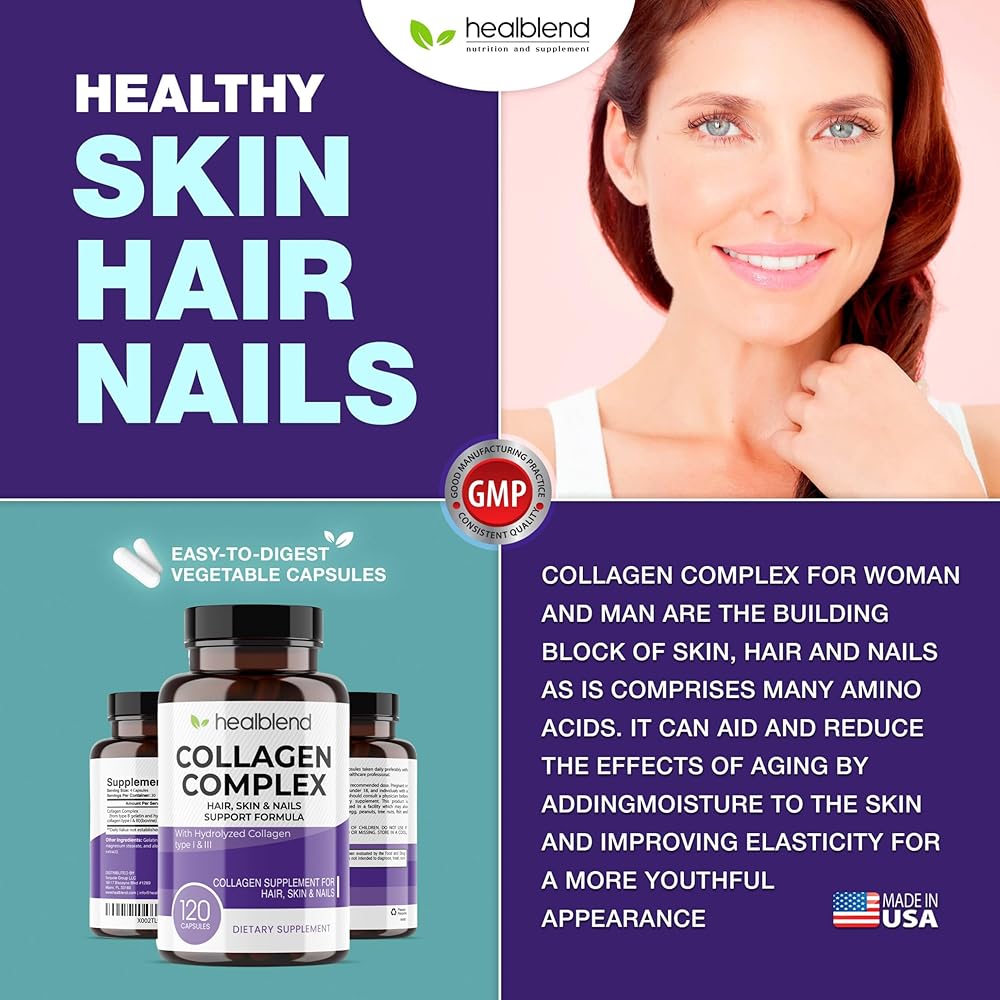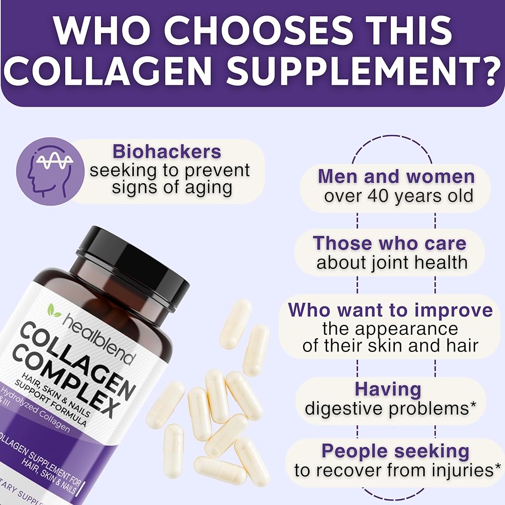 healblend Collagen Complex - Hydrolyzed Collagen Supplement for Women and Men, Anti-Aging and Healthy Joints, Healthy Skin, Hair and Nails (240 Capsules) (2 Pack)
