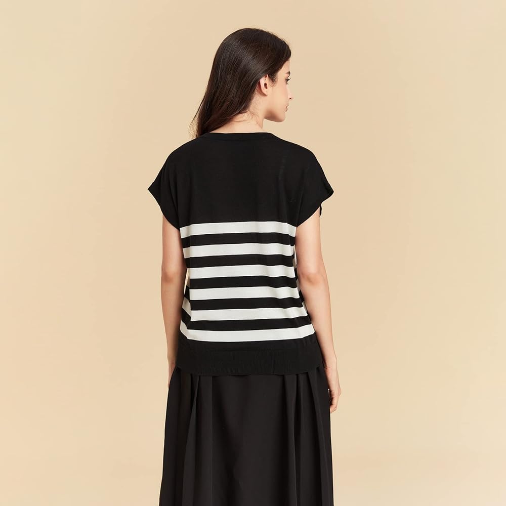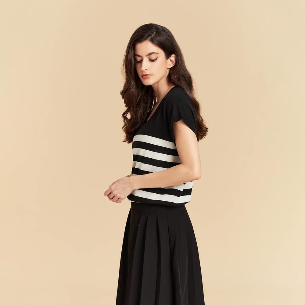 HIGH-END CRAFTSMANSHIP: Adopt Alxa's ultra-fine cashmere fiber and silk, using tightly twisted 2-ply yarn of 60s ultra-fine yarn, combined with 16 gauge high-density craft, the overall T-shirt is light and delicate, and the ultra-fine yarn is less prone to pilling. Lightweight and breathable more suitable for summer.