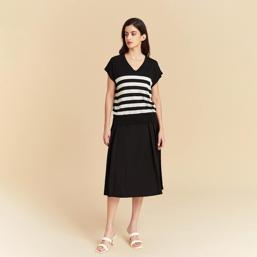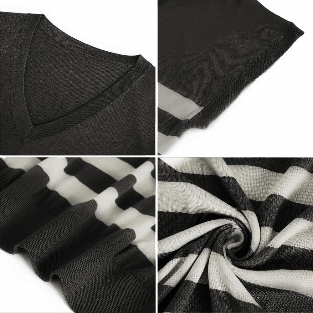 UNIQUE DESIGN: This is a classic V-neck drop shoulder adopt silk with cashmere. it touches lightweight and breathable, The dropped shoulder design combined with the loose version looks relaxed and fashionable, and the striped design can better modify the overall figure. The special double-layer rib seam design at the cuffs makes it not easily curl, the bottom adds spandex ribs to provide stretch and comfort.