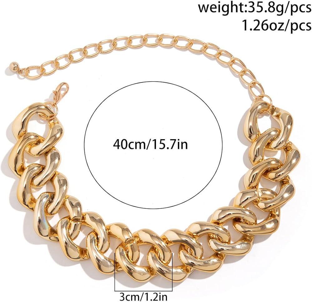 Fashion Gold Silver Punk Cuban Link Chain Choker Bohemian Chunky Chain Necklace Punk Gothic Hip Hop Metal Necklaces Plastic Chunky Curb Chain Necklace for Women Girs