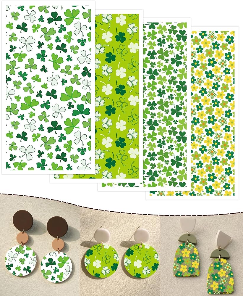 Transfer Sheets for Polymer Clay Earrings: You can use these lucky clover pattern transfer paper to make polymer clay earrings. Or you can make other kind of polymer clay jewelry, like necklace, brooch, bracelet etc.