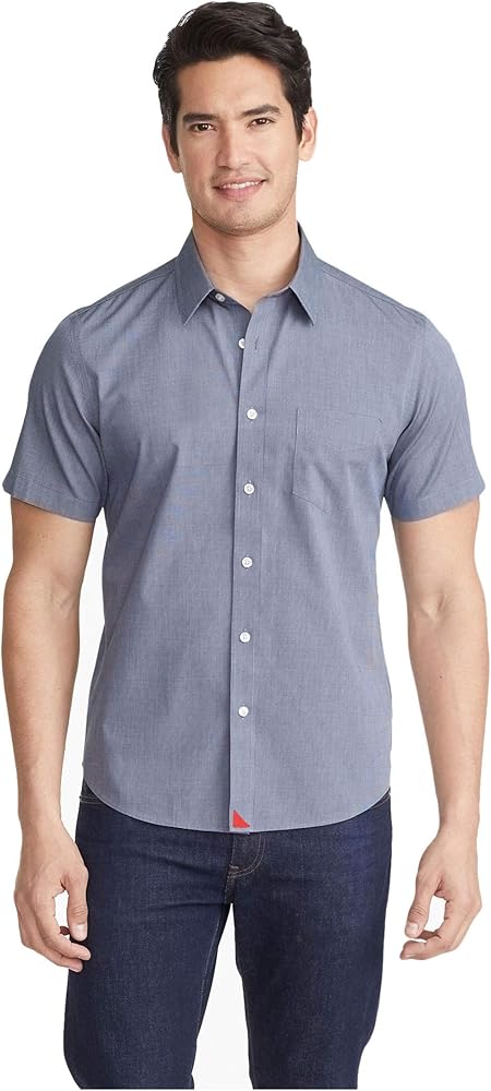 No need to iron out the details. With the wrinkle-free cotton woven in a barely-there crosshatch design, this UNTUCKit button-down shirt will have you ready for any weekend adventure. The refined shirt is crafted from a lightweight, wrinkle-resistant fabrication for convenient on-the-go wear. The perfect lengths are designed to fall halfway between the belt and the bottom of the zipper, allowing the front pockets to be partially exposed to create a smart and casual look while shirts are untucked. The UNTUCKit length is versatile enough to wear tucked in. For the best and desired fit, please reference the size chart for fit description. Narrow pointed collar and short sleeves. Full button-down front closure. Signature sail logo at the bottom placket. Straight back yoke and a patch chest pocket. Shirttail hem in the perfect length. 100% cotton. Machine wash, tumble dry. Imported.