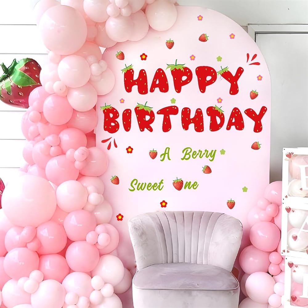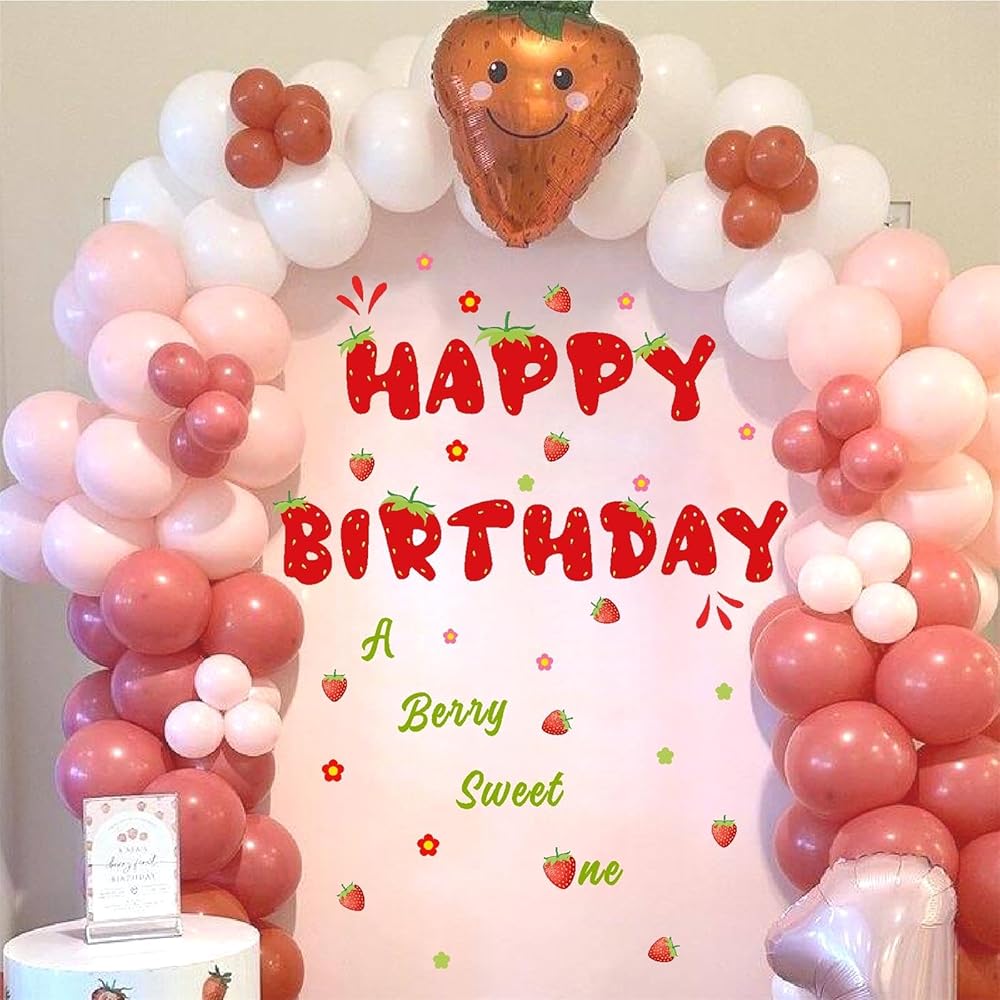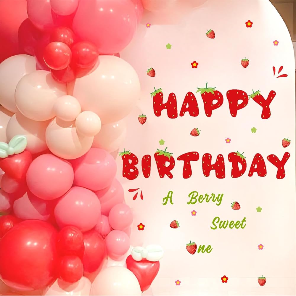 Berry First Birthday Party Decal Berry Sweet One Birthday Backdrop Decals Baby Girl First Birthday Party Stickers for Arch Balloon Baby Shower Party Supplies Decorations