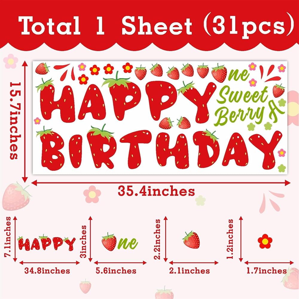 🍓Berry First Birthday Wall Decal: total 1 sheet, fresh fruit strawberry theme birthday wall stickers party sign decoraions balloon arch decor baby shower wall stickers.