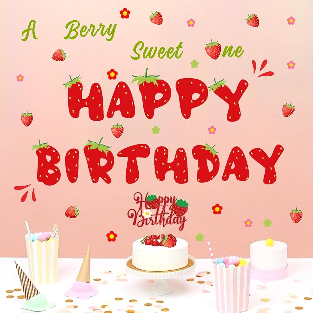 🍓Strawberry Birthday Wall Stickers: peel and stick, easily removable without damaging the wall.