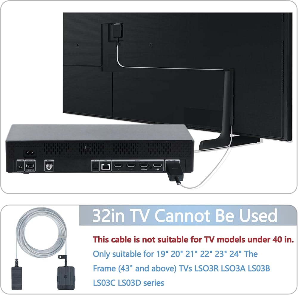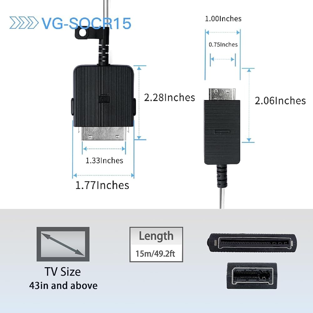 VG-SOCR15/ZA Compatible with samsung one connect cable 15m /49.2ft QN43-85 inches Only for 19'''20'''21'''22'''23'''24'' The Frame (43in and above) TV LS03R LS03A LS03B LS03C LS03D Series