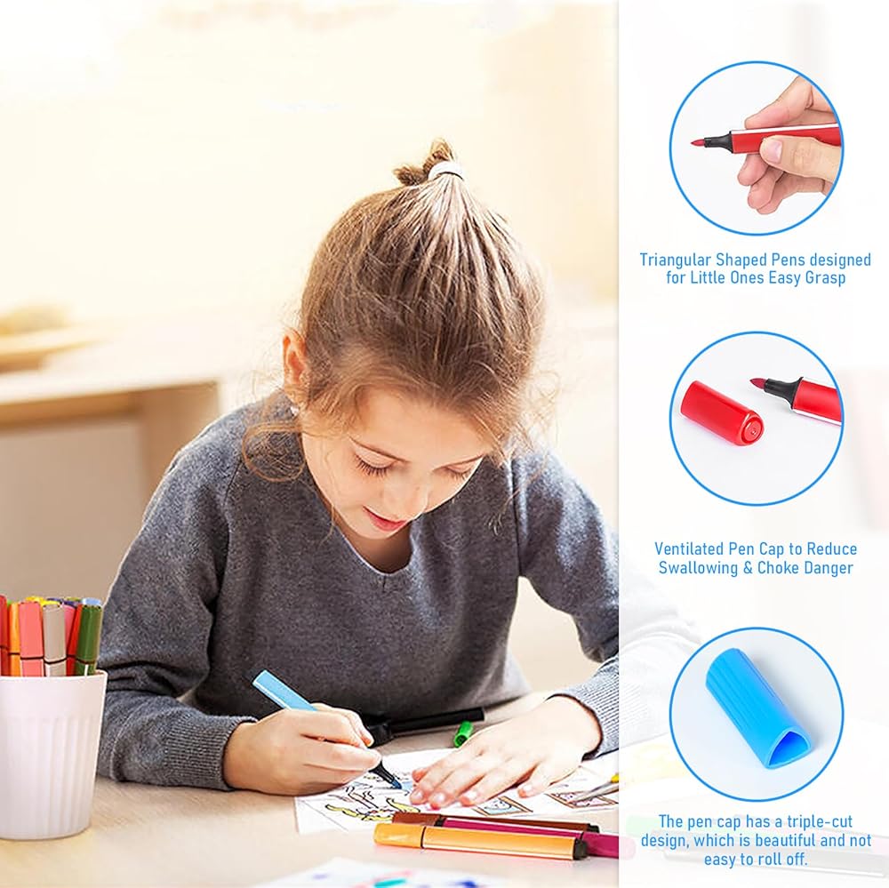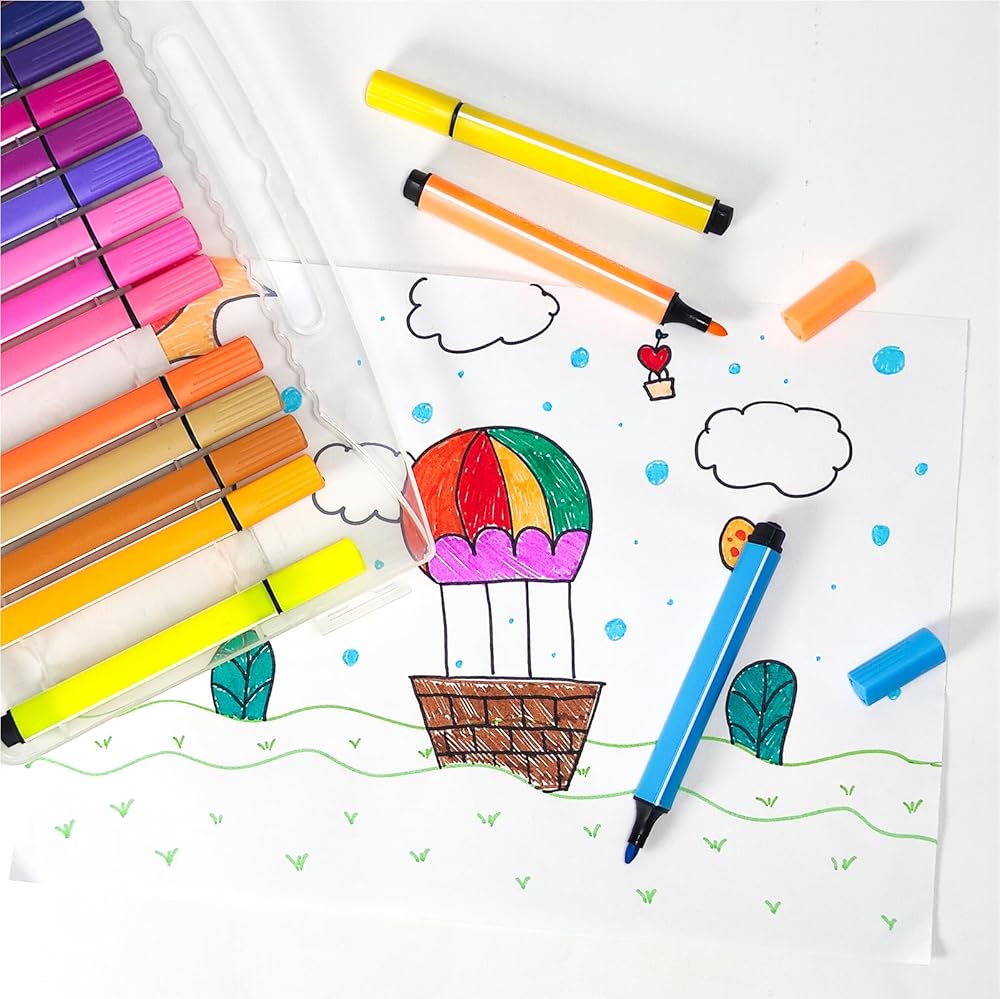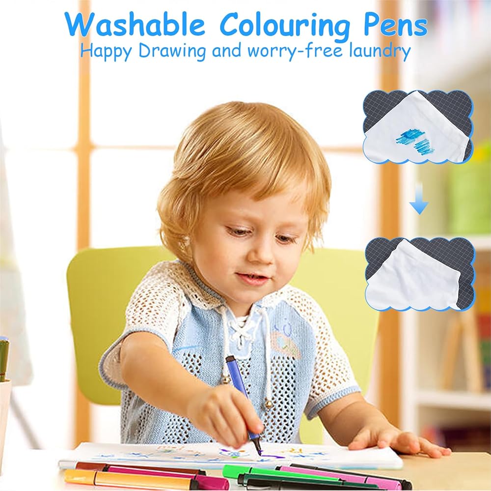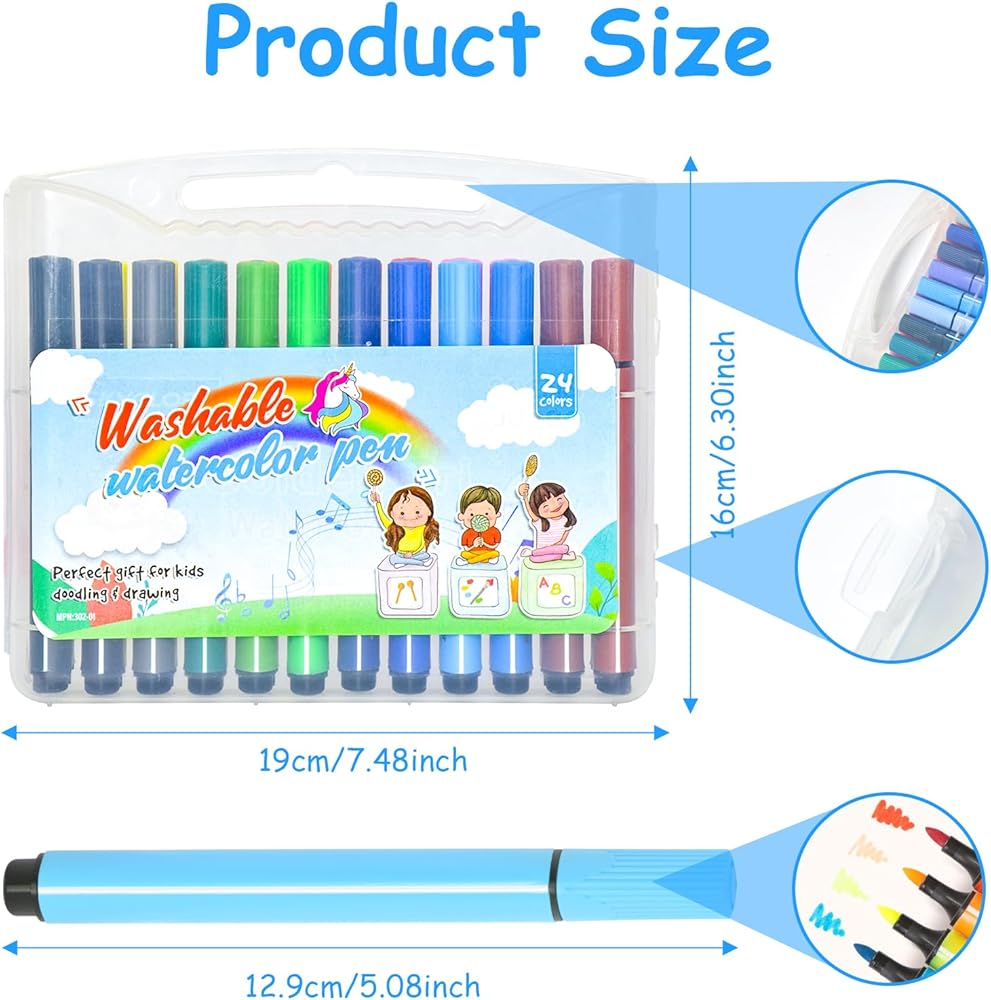 WASHABLE COLOR PEN: selection of well developed brand ink, unique formula, great improved the hydrolysis performance of color ink, so that the washable can reach more than 80%, easy to clean for cloth or skin, don't worry about the dirty of kids.