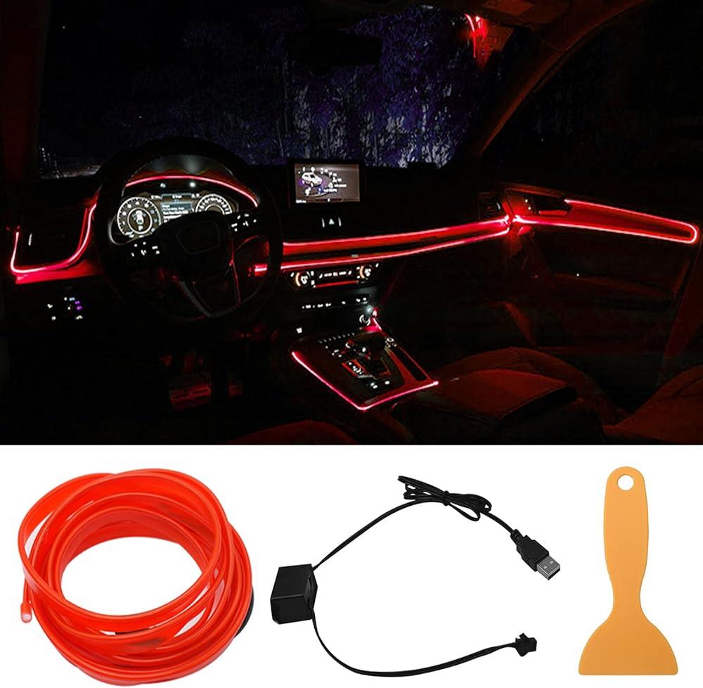 EL Wire LED Strip Lights, 9.8ft/3m Auto Neon String Light, USB Wire for Car Center Console and Dashboard, Ambient Lighting Kit for Indoor Decorations (Red)