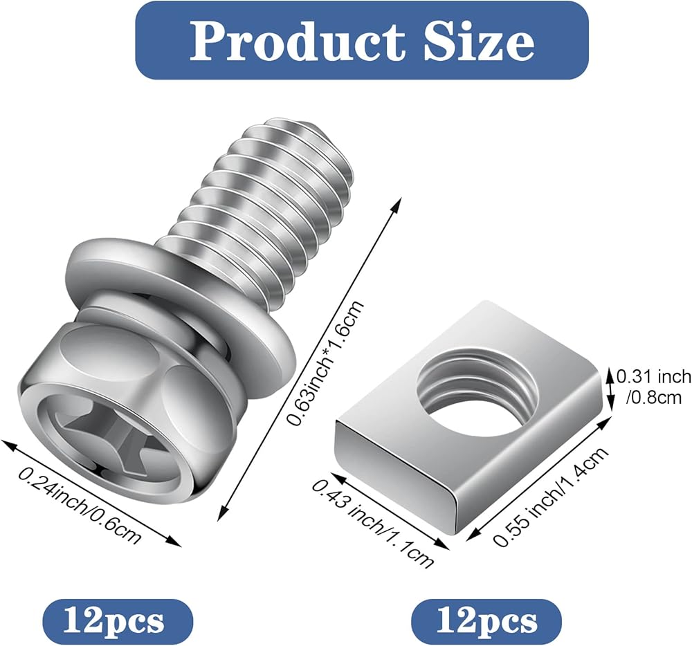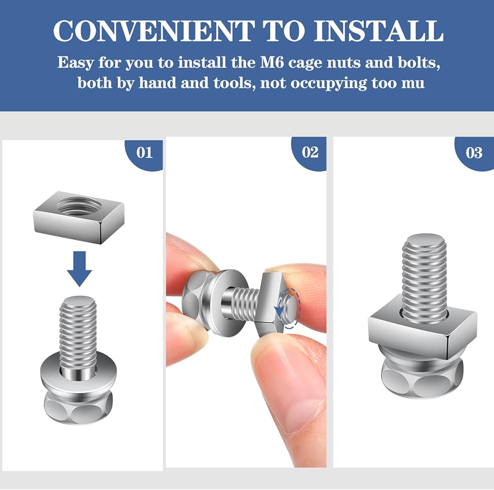 Convenient to Install: it's easy for you to install the M6 cage nuts and bolts, both by hand and tools, not occupying too much time or energy; It's suggested that you drill a hole before you install the screw on the wood