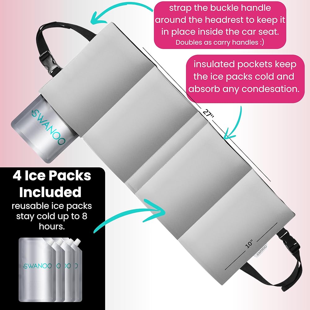 Swanoo Car Seat Cooling Pad, Stroller Cooling Pad with Ice Pack for Babies Toddler and Kids, Sun and Heat Cover Protector for Summer Carseat Cooler Liner
