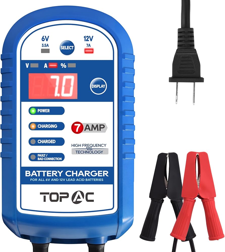 12V/7 Amp,6V/3.5Amp Car Battery Charger,Smart Fully Automatic Battery Charger Maintainer Trickle Charger and Float Charger for Car Truck Motorcycle Lawn Mower Boat, Lead Acid Batteries