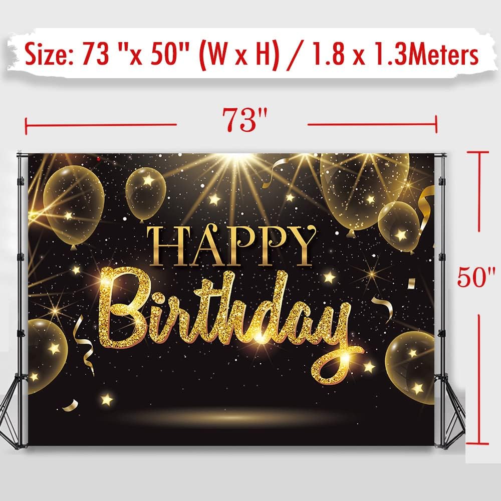 Black Gold Happy Birthday Party Decorations Backdrop, Golden Balloons Glitter Star Birthday Party Photo Background Banner Extra Large Wall Decor Props Party Supplies 6 * 4.2ft