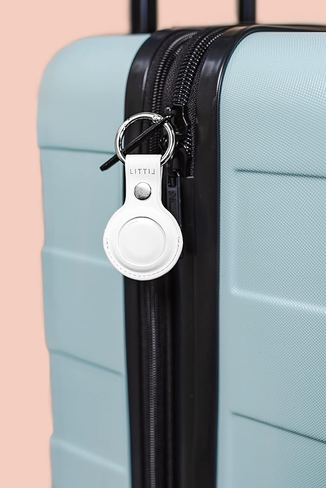 Charm | Airtag Case (White) Compatible Protective Vegan Leather AirTag Holder. Portable GPS Tracker Holder and Air Tag Keychain. iPhone Tracker for Keys, Handbags or Luggage