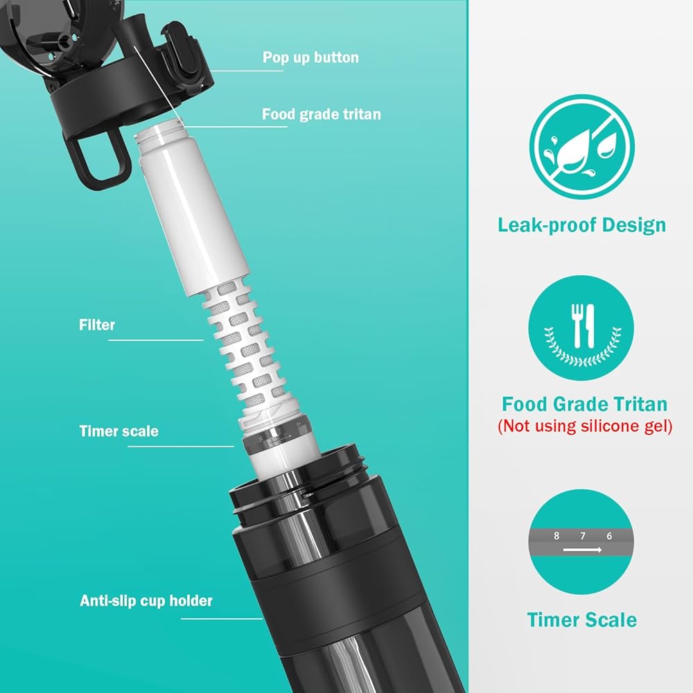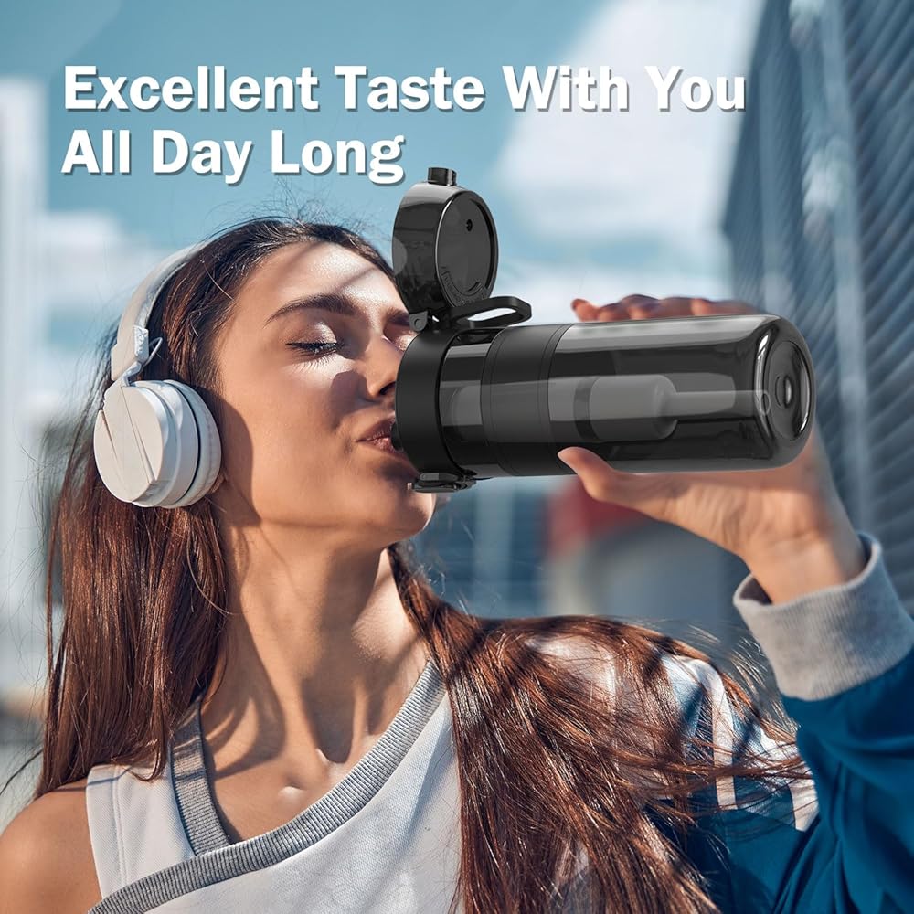 【PUT HEALTH & WELL-BEING FIRST】 We prioritize your well-being by using BPA-free food-grade Tritan plastic material for the entire body of our bottle. Say “Goodbye” to silicone straws and “Hello” to a safe and Easy-to-Clean material. Our portable water bottle filter is free from any harmful ingredients, plastic taste, or unpleasant odors. Just relax and enjoy your water with our “moving purifier bottle”!