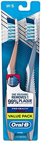 The Oral-B CrossAction All In One Manual Toothbrush bristles attack plaque from the perfect angle cleaning better than a flat trim brush with straight bristles. Plus, Pro-Health's tongue cleaner helps remove germs from the tongue. Color may vary.
