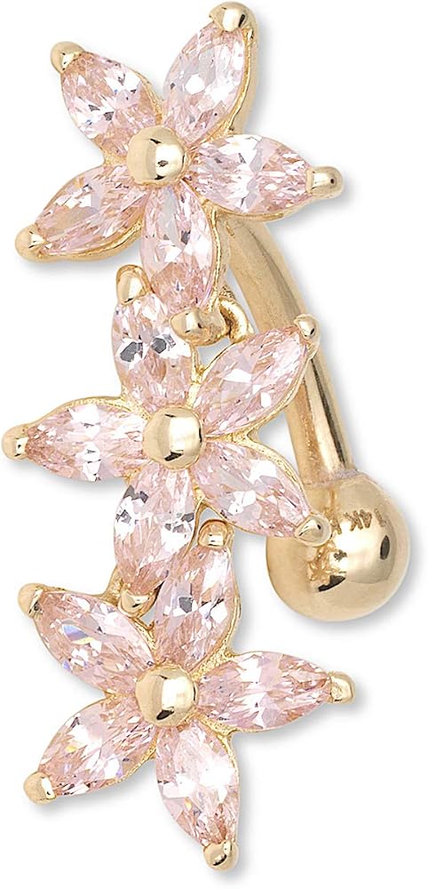 real 14k gold simulated diamond belly ring dangle piercing for women and teens