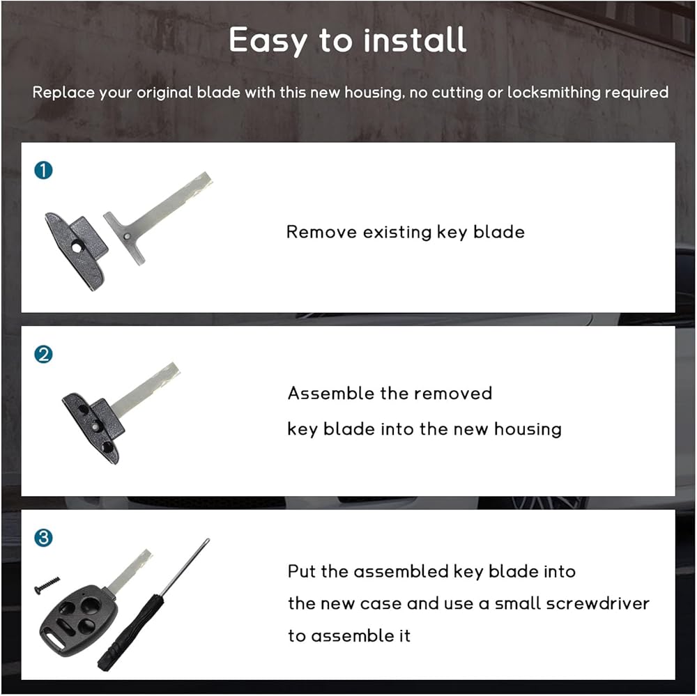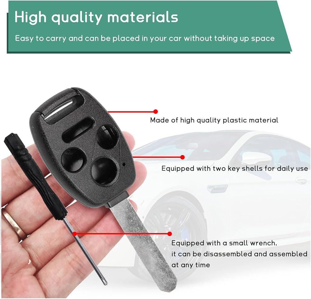 【Easy Installation】: The key fob shell doesn't contain electronics. So, you can just put the original key blade and electronics into the product, and don't need to reprogram it. There are small tools for your installation, which are one small screwdriver and two small screws. Besides, the product doesn't need complex cutting or a locksmith so that you won't cut hands with sharp blades.