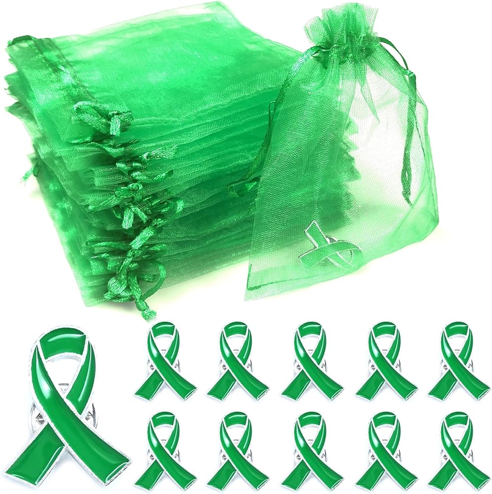 Package Includes: You will receive 50 pieces of teal ribbon awareness pins and 50 pieces 3x4 inch organza gift bag, Each pin measures 1 x 0.78 inches, is made of alloy. Organza bag approx. 3 x 4 inches.