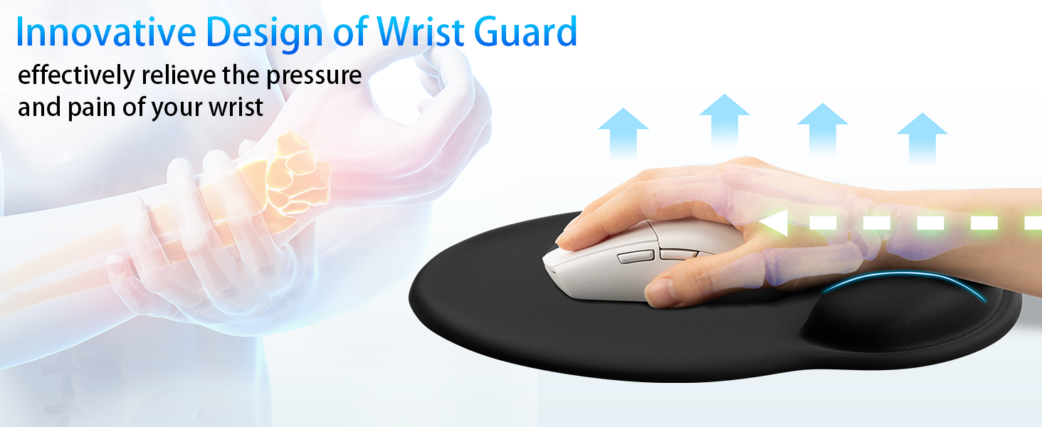 Ergonomic Design - This Comfortable Mouse Pad with Wrist Support provides a natural and comfortable posture for your wrist, which can relieve the pressure and fatigue of your wrist, ensuring longer computer use with ease
