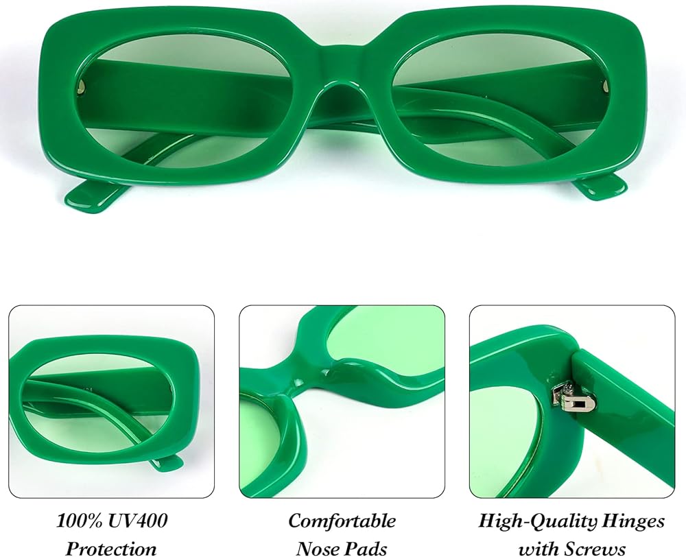 RETRO OVAL LENS SUNGLASSES: Keep up with the latest retro fashion trends with these oval lens vintage green sunglasses. Retro rectangular frames flatter any face shape. The bright ice cream colors can be paired with different outfits for everyday fashion.