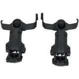 Compatible with Armorwerx & Peltor Comtac headset allow you to mount your headset to your tactical helmet rail - Unique design attaches to unused rear slots of helmet rail, freeing up side rail real estate for lights, cameras, goggles, etc. - Cam locking mechanism allows for easy opening and closing - 360 degree rotating mount allows headset to be swung out of the way and stowed on back of helmet when not in use - Adjustable to multiple positions and lengths for a perfect fit - High strength yet lightweight polymer construction - Made by Armorwerx, a division of The Mercenary Company