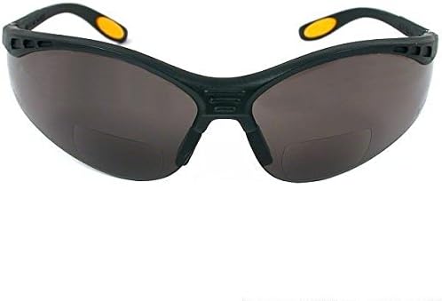 DEWALT reinforce safety glasses with smoke 2x lenses This is a new pair of DEWALT reinforce safety glasses with hard coated Smoke 2x bifocal lenses and black frames The strong Polycarbonate lenses provide impact resistance handgrip pattern on temple provides a secure grip has soft NON SLIP rubber nosepieces for long wearing comfort has cushioned rubber tip temple pads for maximum comfort The lenses provide 99. 9% UVA and UVB protection Includes a protective lens sleeve to protect your glasses from scratches and debris These meet or exceed all ANSI Z87. 1 and CSA Z94. 3 requirements this color is great for outdoor applications where sunlight and glare cause eye strain and fatigue when it comes to safety eyewear Radians is unsurpassed in selection, quality, delivery and value