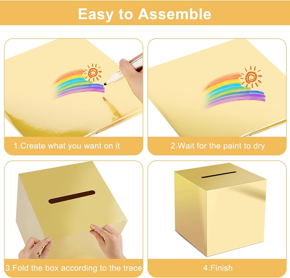 Adorox 10x10x10 Inch Gold Wishing Well Wedding Money Box Memory Cards Reception Centerpiece Box for Weddings, Birthdays, Anniversaries, 1PC