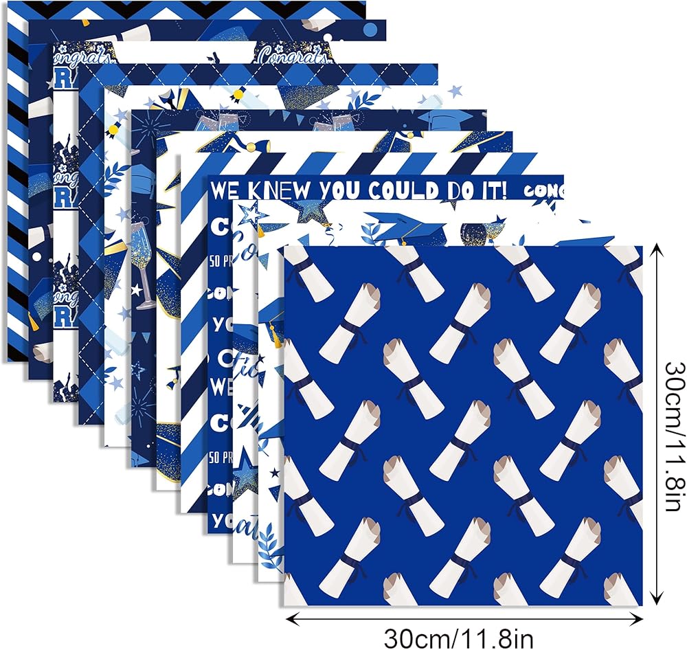 🎓🎓【Abundant Package】 - Package includes totally 24 sheets blue color graduation patterned paper in 12 different designs, each design has 2 sheets, sufficient to meet your needs for art crafts, and you can share with your friends to DIY, would add more fun to your graduation DIY crafts.