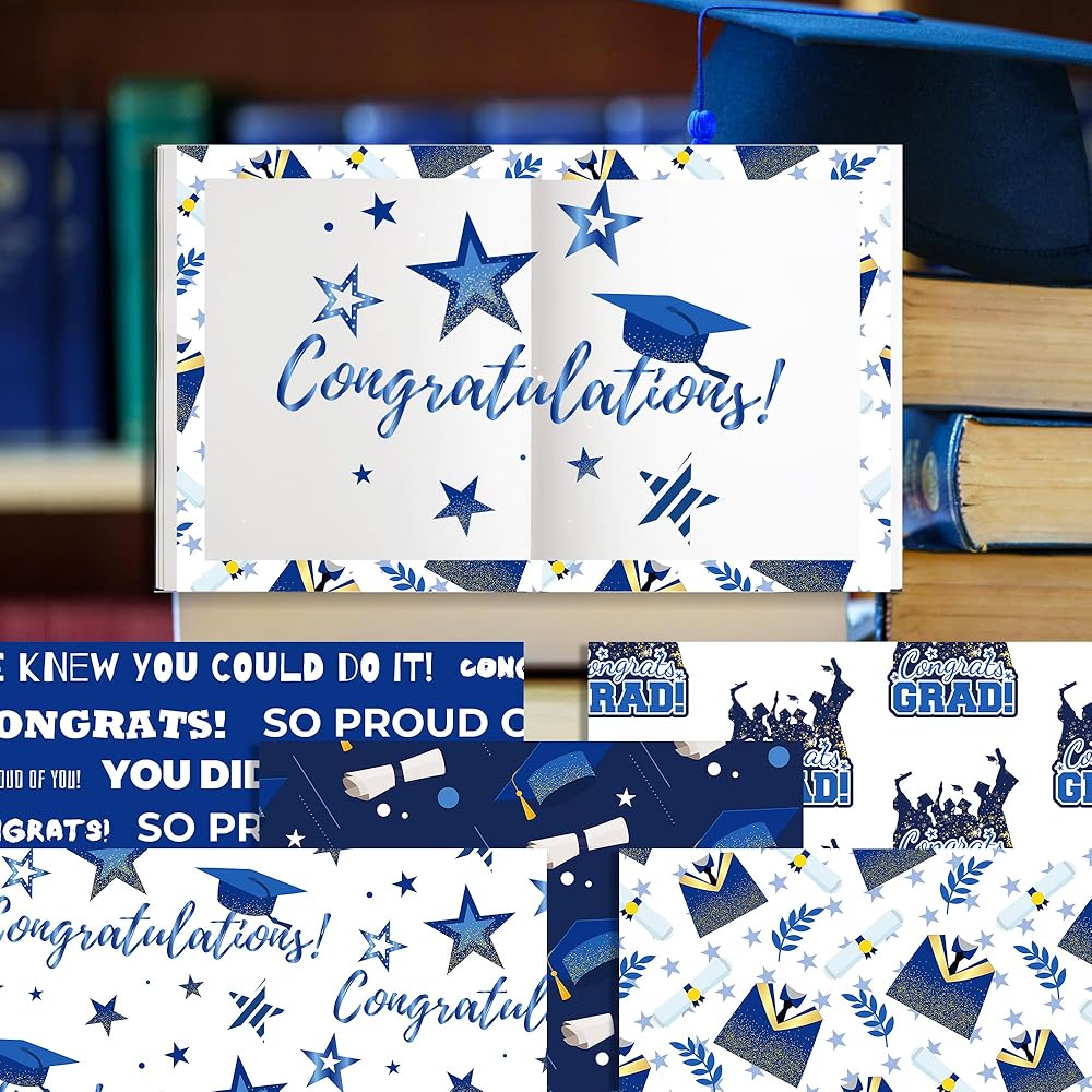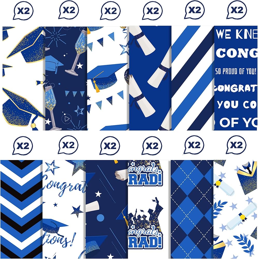 🎓🎓【Premium Material】- Our blue graduation pattern paper is made of finest quality paper, easy to fold and hard to tear off, can be applied to many items, durable and printed with bright color!