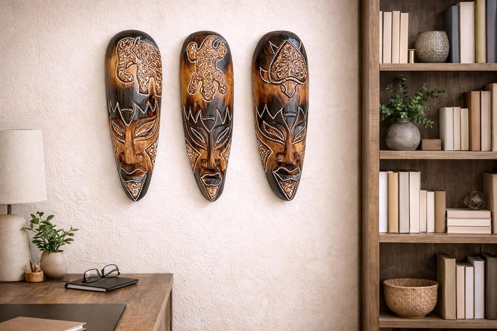 African Tiki Masks Wall Hanging Decor For Home And Office - Hand Crafted By Skilled Artisans