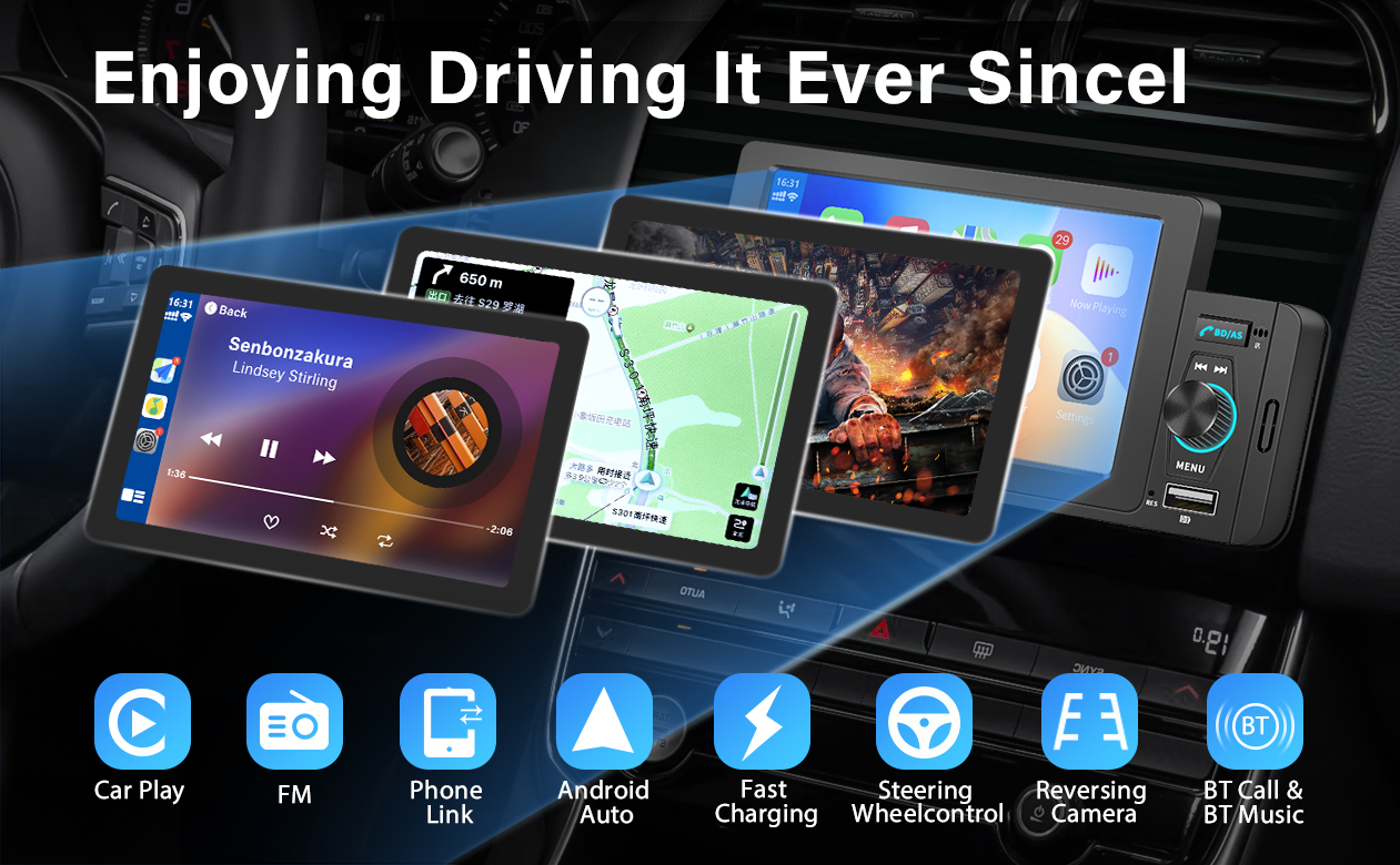 【Wirelsee Apple Carplay/Android Auto】This car stereo supports wireless Apple Carplay/Android Auto. Just connect to your smartphone via Bluetooth. You can access map navigation, phone contacts, email, notifications, music, and keep your hands completely safely on the wheel while you're focused on driving.