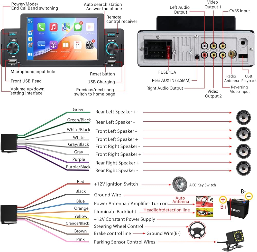 【Customer Service】Our car stereo is only compatible with 12V automotive DC voltage. Be sure to view the detailed wiring diagram in the picture before installation and use the wiring harness that came with our radio. If you have any questions, please feel free to contact us.
