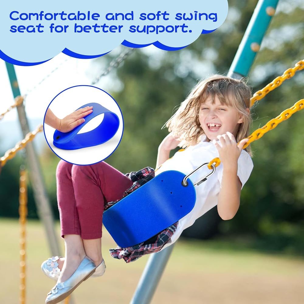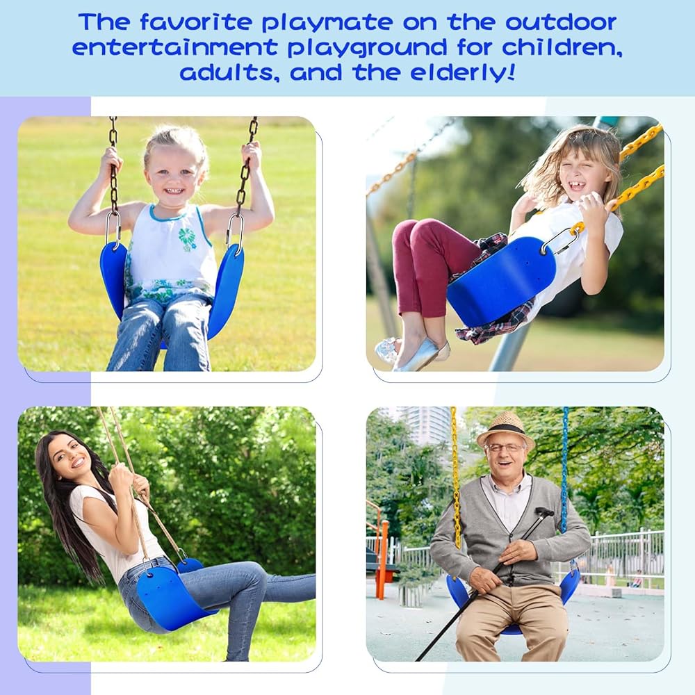 🌈Soft EVA Seat- The sturdy swing seat allows squeeze without deformation, while bending can be recovered immediately in a short period of time. It is resistant to chemicals, corrosion, cracking and dust.
