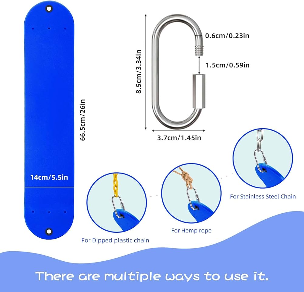 🌈Flexible Design for Comfort- Made of EVA plastic material, GAMKII swing seats are strong enough to hold up to 300lb. U-shaped & non-slip design swing broad is 26 "x5.5"(L*W), making it comfortable and safe for your family to swing on.