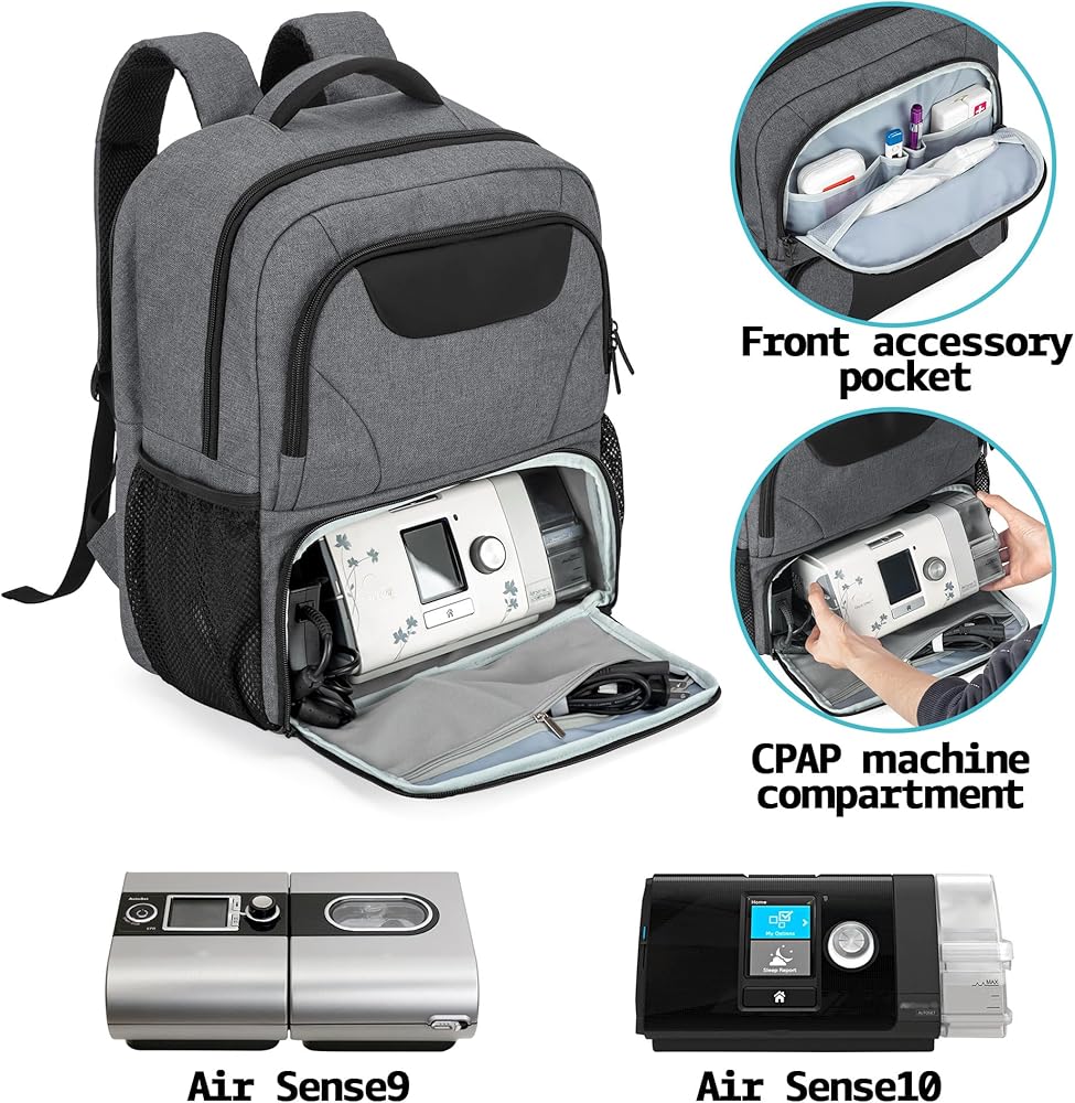 DEDICATED CPAP BACKPACK: Compatible for ResMed Air Sense 9, Air Sense 10, and Philips System One. Main compartment keeps CPAP machine and supplies individually. (Empty Bag Only, Patented Design)