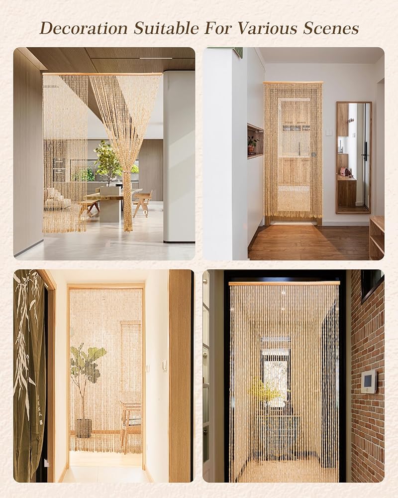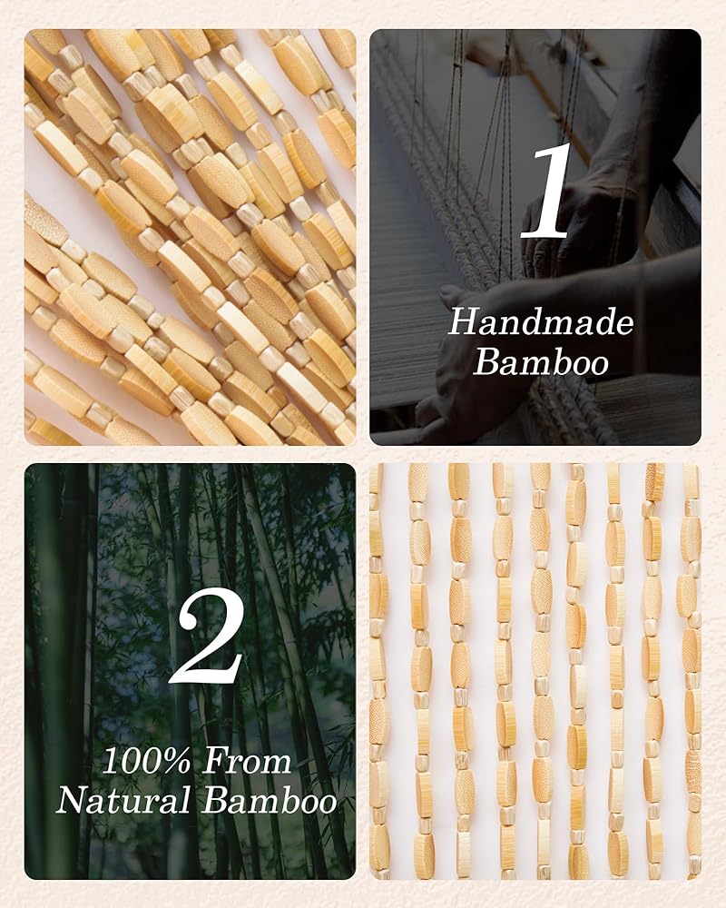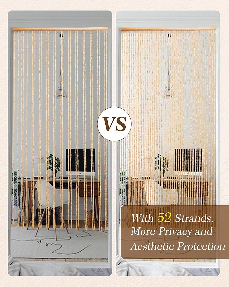 PRIVACY ENJOYMENT: The upgraded 52-strand density ensures a better privacy, making it perfect for use as a room divider or hallway entrance. Careful hand-measurement and neat craftsmanship maintain the purest natural style. Our curtain offers both aesthetic beauty and functional privacy, with neat craftsmanship eliminating any unevenness at the bottom of the curtain.