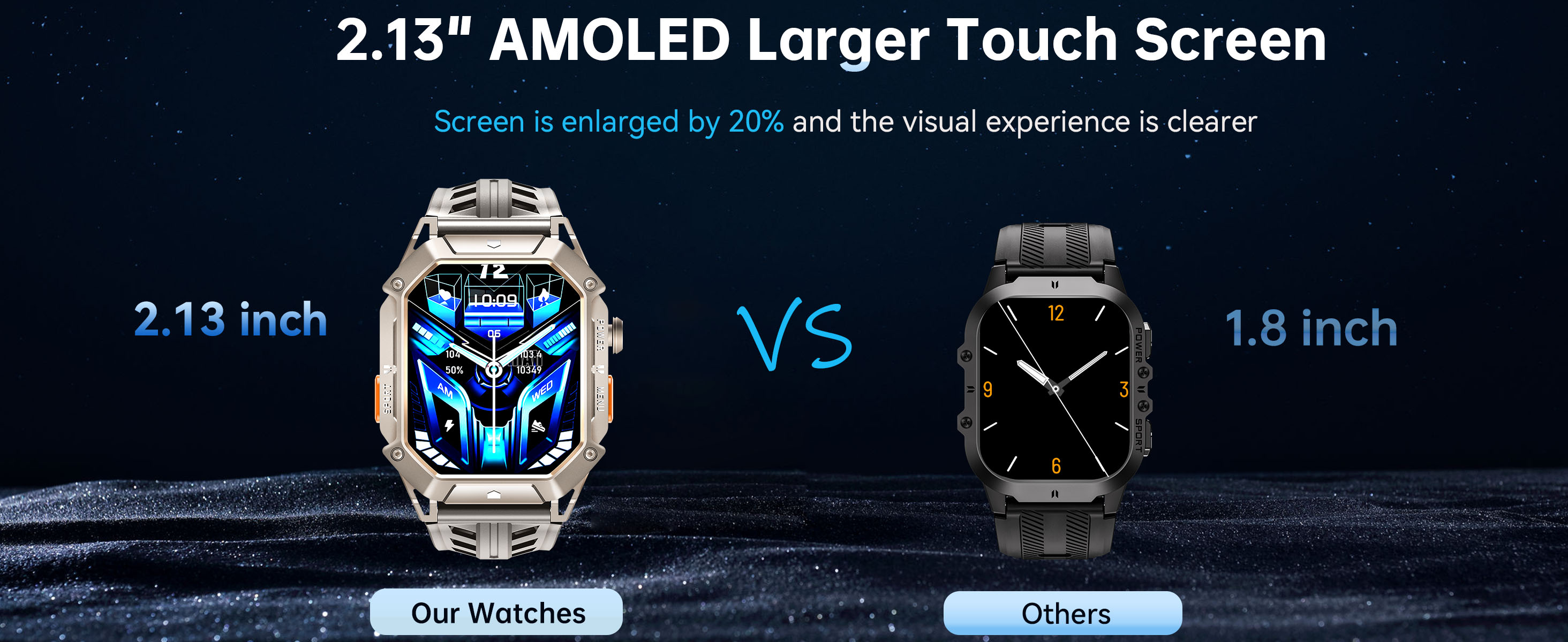 【 HD AMOLED Touch Screen】: 2.13-inch AMOLED screen with a resolution of up to 410*502 and a screen color gamut of 100% RGB, even under direct sunlight, it can present clear and sharp images and text, making your visual experience more delicate.