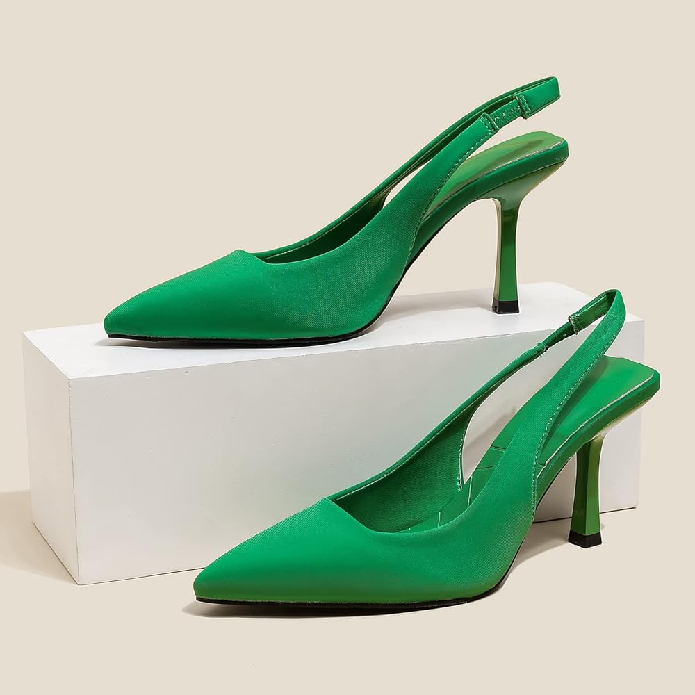 High-heel slingback court shoes in fabric. Pointed toe. Back strap with elastic piece. A classic staple in every wardrobe, you can never go wrong with kitten heels! The sandals have a pointed toe and slingback for a secure fit while the cushion insoles offer comfort. The heeled sandals are stylish and can be shoes for wok and play both, being versatile in nature!