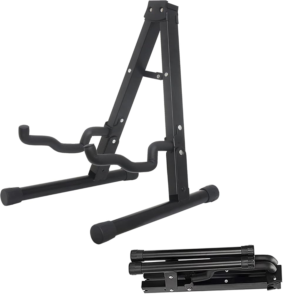 Foldable and Portable: Compared with wooden stand, this holder without installation, open and ready to use. After folding, the volume of the stand is so compact and you can put it in the pocket of your guitar case, it is very easy to carry.