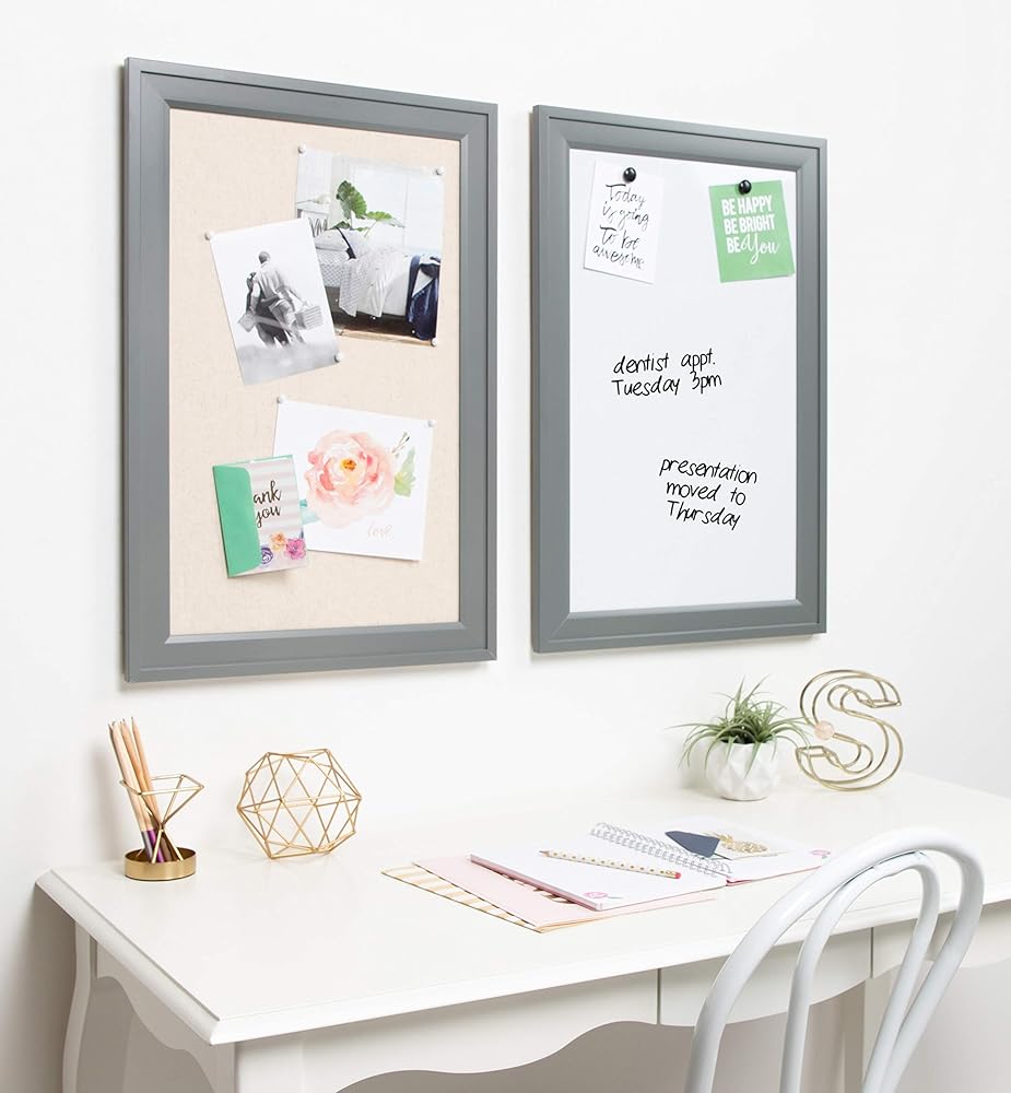 Enhance your wall decor with multifunctionality with the Bos! the Bosc modern dry erase board is magnetic, lightweight, and beautifully framed to fit into your home decor. There are many fantastic ways to put this wall organizer to good use! Post all your necessary appointments, display your photos, organize weekly meals, make chore charts, and daily to-do lists. How you use this wall-mounted whiteboard is up to you! The gray finish on this stunning accent piece allows it to fit in multiple decor spaces throughout your home, offering a transitional look that works regardless of the season. It would be perfect for use in an entryway, home office, or kitchen to organize and display anything you need throughout the week you need. The outer display dimensions are 18. 5 inches by 27.5 inches, and it hangs vertically or horizontally to fit on any size wall. The writing whiteboard surface is 14. 5 inches by 23. 5 inches, giving you enough space to write (or draw) anything your heart desires.