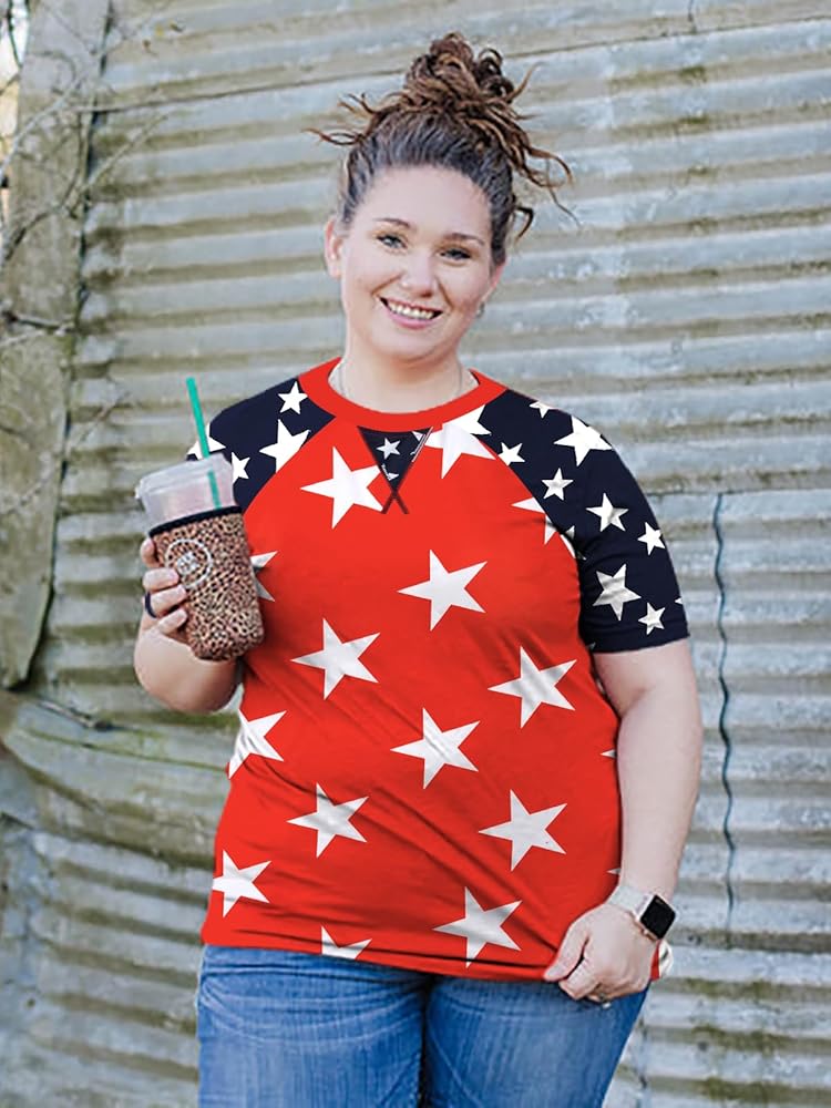 【Occasion】: The plus size american flag graphic tees looks great with leggings, jeans, pants and shorts. Flattering and stylish look. Suitable for a variety of occasions: 4th july, patriot, independence day, american themed party, casual daily wear.