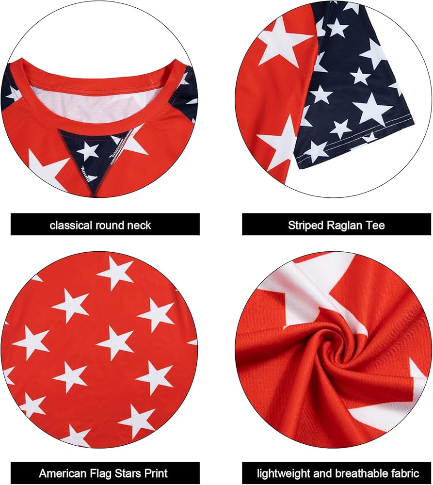 【Package Including】:1* Womens American Flag Shirt Plus Size Tops Short Sleeve Striped Raglan Tunics