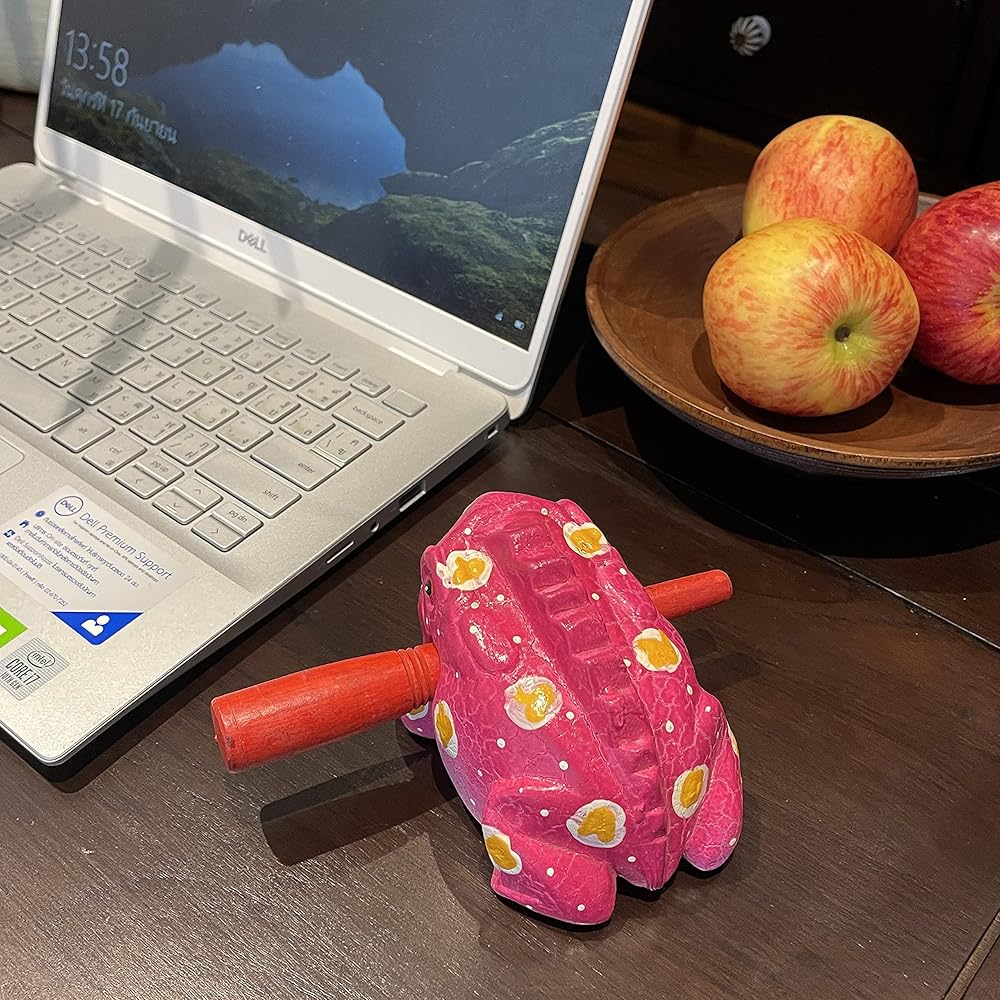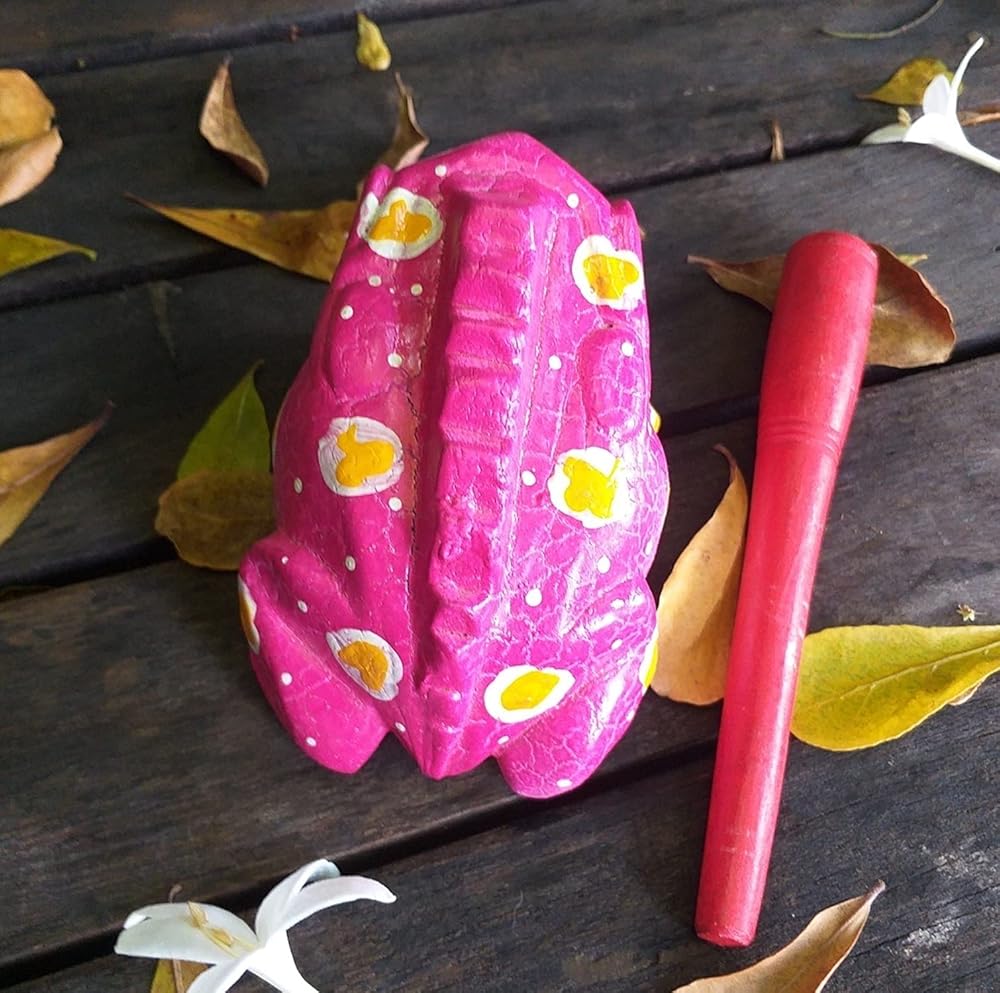 Product description 🔘 Traditional Craft Wooden Luck & Money Frog Home Office Decor Art Figurines Ornament Meditation Relaxation . 🔘The cricket makes a sound that resembles a cricket, the frog does sound like a frog, and the owl does make a hooting sound. 🔘 When you sweep the frog's back, it sings very eadily and produce rich, harmonic and soothing sound immediately. 🔘 Can be used as a ornaments also used for meditation, music, relaxation, etc. 🔘 Great gift for children ,friends,home , office etc.