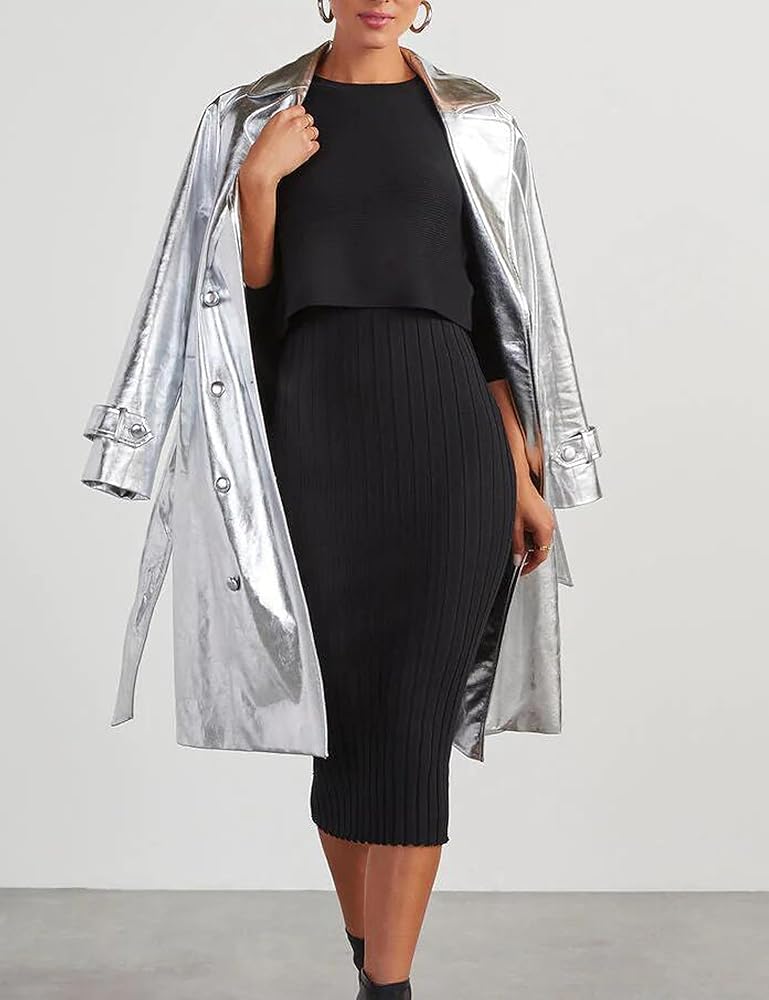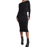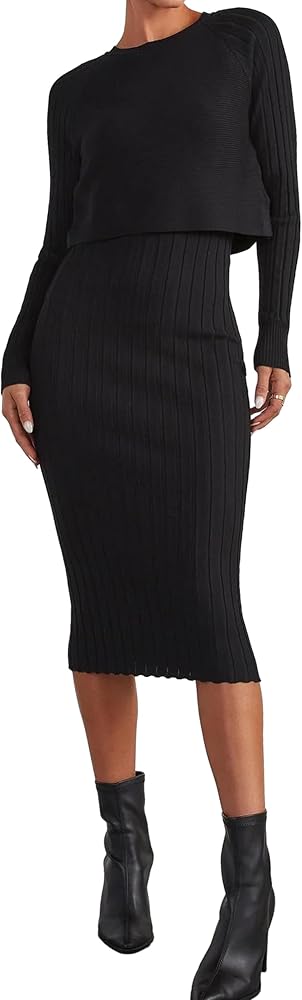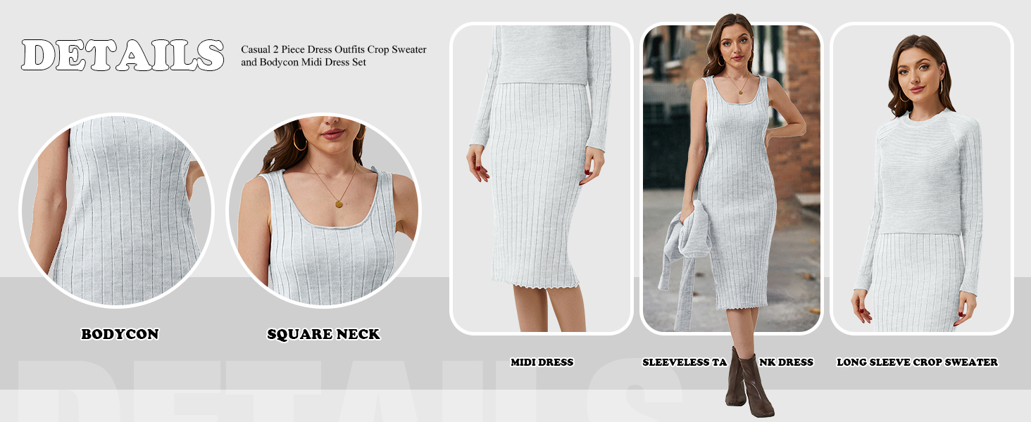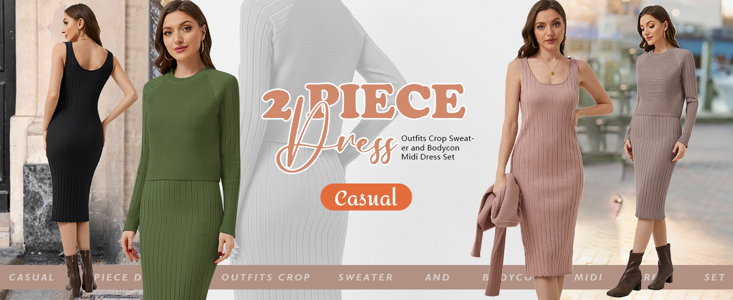 2 Piece Outfits Dress Sets: 1pc crew neck ribbed knit crop sweater + 1pc skinny pencil midi dress, the 2 piece sweater suit set can be worn together or alone for a variety look.